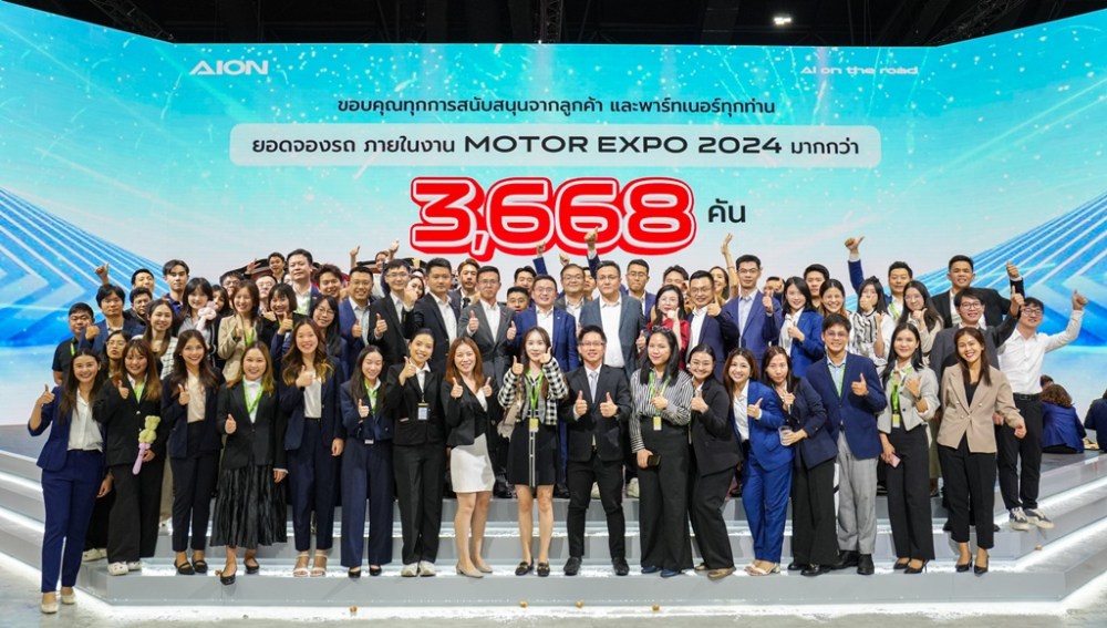 AION Thailand สร้างปรากฏการณ์ครั้งสำคัญในงาน Motor Expo 2024 ด้วยยอดจองรถยนต์ 3,668 คัน คว้าตำแหน่งอันดับที่ 2 ยอดจองสูงสุดในกลุ่มแบรนด์รถยนต์ไฟฟ้า (EV) และอันดับที่ 4 ในกลุ่มแบรนด์รถยนต์ทั้งหมด ที่เข้าร่วมงานมหกรรมยานยนต์ครั้งที่ 41 หรือ Bangkok International Motor Expo 2024 ที่จัดขึ้นระหว่างวันที่ 29 พฤศจิกายน – 10 ธันวาคม 2567 ตอกย้ำความนิยมและความไว้วางใจที่ผู้บริโภคชาวไทยมอบให้กับรถยนต์ไฟฟ้า AION และ HYPTEC