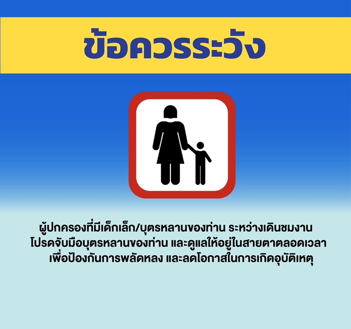 - ผู้ปกครองที่มีเด็กเล็กควรดูแลบุตรหลานอย่างใกล้ชิด
