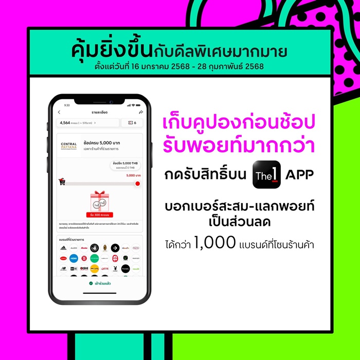 ต่อที่ 1: เก็บคูปองก่อนช้อป รับพอยท์มากกว่า เพียงบอกเบอร์สะสม พร้อมแลกพอยท์เป็นส่วนลดได้กว่า 1,000 แบรนด์ที่โซนร้านค้า