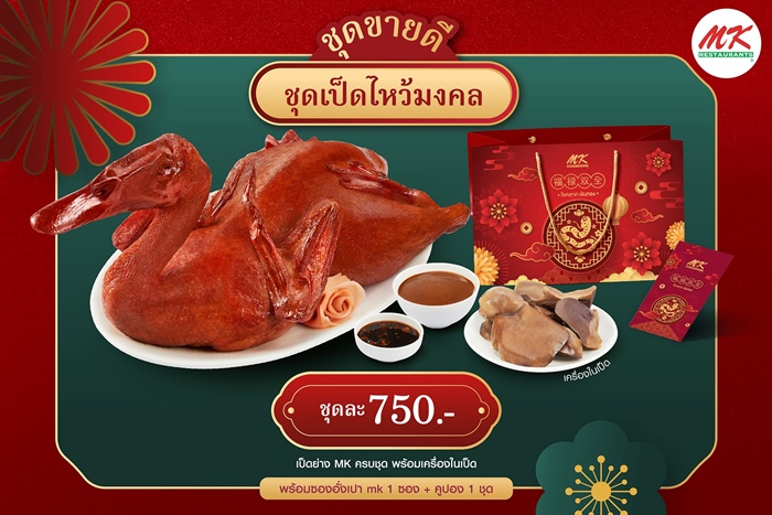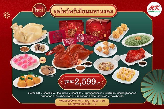 ซึ่งตรุษจีนปีนี้ ทาง MK Restaurant ก็ได้มีการจัดเตรียมเซตไหว้ เสริมมงคล เพิ่มความเฮง ด้วยของไหว้คุณภาพดี สะอาดปลอดภัย ใส่ใจสุขภาพ และถูกหลักการไหว้ ตอบโจทย์ทุกความต้องการของทุกคนในครอบครัว การันตีด้วยจำนวนเซ็ตไหว้ที่ขายมาแล้วกว่า 40,000 ชุด และยอดขายเมื่อปีที่แล้วที่มากขึ้นกว่าปีก่อนถึง 25% คาดปีนี้จะมียอดขายที่มากขึ้นอีกอย่างต่อเนื่อง