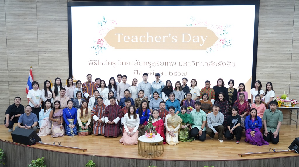 วิทยาลัยครูสุริยเทพ มหาวิทยาลัยรังสิต จัดพิธีไหว้ครู ประจำปีการศึกษา 2567 โดยได้รับเกียรติจาก ดร.มลิวัลย์ ประดิษฐ์ธีระ คณบดีวิทยาลัยครูสุริยเทพ เป็นประธานในพิธี นอกจากนี้ ยังมีการมอบรางวัลศิษย์เก่าดีเด่น ประจำปีการศึกษา 2567 การแสดงนาฏศิลป์ไทย โดยนักศึกษาจากสถาบันศิลปวัฒนธรรม ฯ มหาวิทยาลัยรังสิต และพิธีผูกข้อมือนักศึกษา เพื่อรับเป็นศิษย์พร้อมพูดคุย อวยพร ให้แก่นักศึกษา ณ ห้อง 6 – 200 อาคาร Student Center (อาคาร 6) มหาวิทยาลัยรังสิต