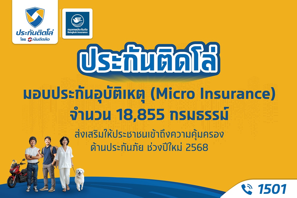 ส่งท้ายปีเก่าอย่างสบายใจ “ประกันติดโล่” บริหารโดย บริษัท เงินติดล้อ จำกัด (มหาชน) หรือTIDLOR มอบกรมธรรม์ประกันอุบัติเหตุ (Micro Insurance) ระหว่างวันที่ 20 ธันวาคม 2567 – วันที่ 20 มกราคม 2568 ที่ผ่านมา ให้กับประชาชนทั่วไป รวมทั้งสิ้น 18,855 กรมธรรม์ โดยมีระยะเวลาคุ้มครอง 30 วัน (นับตั้งแต่วันที่สมัคร) เพื่อส่งเสริมความคุ้มครองช่วงปีใหม่ 2568 ซึ่งเป็นช่วงเวลาแห่งการเดินทางกลับภูมิลำเนา ท่องเที่ยว หรือเฉลิมฉลอง ซึ่งถือเป็นช่วงที่มีความเสี่ยงในการเกิดอุบัติเหตุสูงกว่าช่วงเวลาปกติ เพื่อเป็นการบรรเทาภาระค่าใช้จ่ายและความสูญเสียที่อาจเกิดขึ้นจากอุบัติเหตุหรือเหตุการณ์ไม่คาดคิด โดยประกันอุบัติเหตุดังกล่าว ให้ความคุ้มครองสูงสุด 100,000 บาท ค่ารักษาพยาบาล 5,000 บาท และความคุ้มครองอุบัติเหตุสาธารณะเพิ่มอีก 100,000 บาท