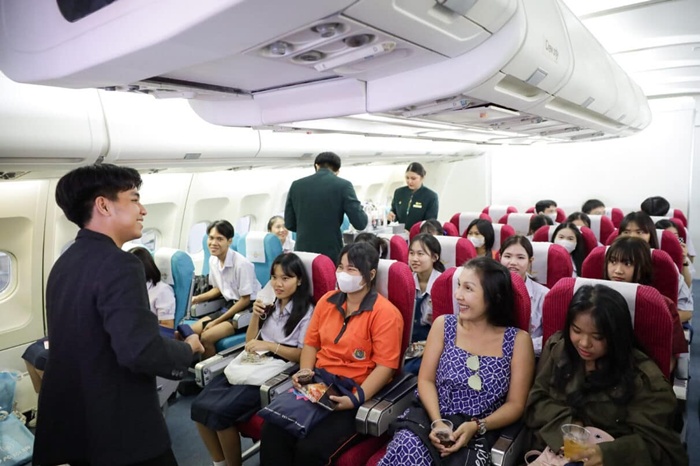 นายสรวิศ วรรณศักดิ์สกุล (พี่ออสติน) นักศึกษาชั้นปีที่ 3 สาขาการจัดการธุรกิจการบินและการขนส่ง(หลักสูตรควบสองปริญญา RSU X KMITL) วิทยาลัยการท่องเที่ยวและอุตสาหกรรมการบริการ ม.รังสิต เล่าให้ฟังว่า ตนมีใจรักที่อยากจะเรียนการบินและชื่นชอบในด้านการบริหาร ในช่วงของการเลือกศึกษาต่อจึงมีโอกาสค้นหาข้อมูลเกี่ยวกับหลักสูตรของทุกมหาวิทยาลัย ที่เปิดสอนการจัดการธุรกิจการบิน ด้วยในยุคสมัยนี้ปริญญาตรีใบเดียวคงไม่เพียงพอ ออสตินมองเห็นทางเลือกที่เปิดโอกาสการเรียนรู้ที่มากกว่า จึงเลือกเรียนหลักสูตรควบสองปริญญา สาขาธุรกิจการบินและการขนส่ง มหาวิทยาลัยรังสิต กับหลักสูตรบริหารธุรกิจและการเป็นผู้ประกอบการ สถาบันเทคโนโลยีพระจอมเกล้าคุณทหารลาดกระบัง