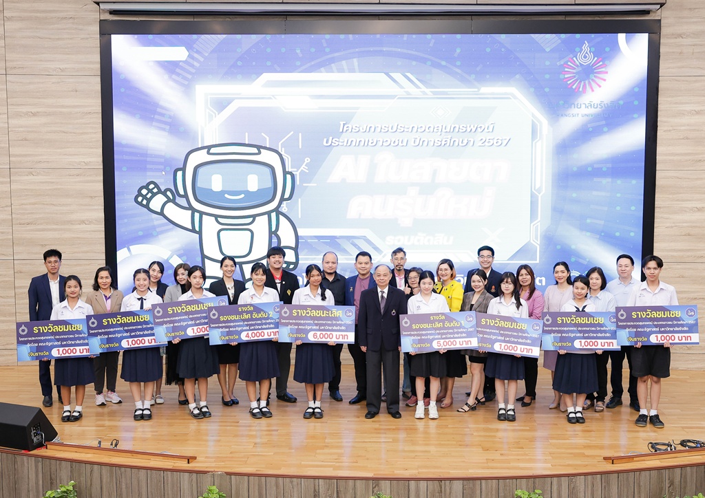 คณะรัฐศาสตร์ มหาวิทยาลัยรังสิต จัดประกวดสุนทรพจน์ประเภทเยาวชน ประจำปี 2567 ภายใต้หัวข้อ “AI ในสายตาคนรุ่นใหม่” ชิงเงินรางวัลพร้อมโล่และเกียรติบัตร โดยรางวัลชนะเลิศ ได้แก่ นางสาวรัชดาวัลย์ วิปุลานุสาสน์ โรงเรียนหาดใหญ่วิทยาลัย รางวัลรองชนะเลิศ อันดับ 1 ได้แก่ นางสาวกาญจณิชา รำเพยพงศ์ โรงเรียนสาธิตมหาวิทยาลัยศรีนครินทรวิโรฒประสานมิตร (ฝ่ายมัธยม) รางวัลรองชนะเลิศอันดับ 2 ได้แก่ นางสาวกรสุมา บุญเยี่ยม โรงเรียนสิรินธร รางวัลชมเชย ได้แก่ นางสาวทัศศิกา อาคุซึ โรงเรียนสตรีอ่างทอง นางสาวกุลมน ร่วมจิตร โรงเรียนบดินทรเดชา (สิงห์ สิงหเสนี) นางสาวกัสนีวา เจริญสุข โรงเรียนสายปัญญารังสิต นางสาวนาตยา ทิพย์สุขุม โรงเรียนวัฒนานคร นางสาวฑีฆายุวรรณ อาศัยกลาง โรงเรียนวิทยาศาสตร์จุฬาภรณราชวิทยาลัย ชลบุรี และนายภูริชญา ม่วงไทย โรงเรียนพระแสงวิทยา จัดขึ้น ณ ห้อง 6-200 (ชั้น 2) อาคาร Student Center มหาวิทยาลัยรังสิต