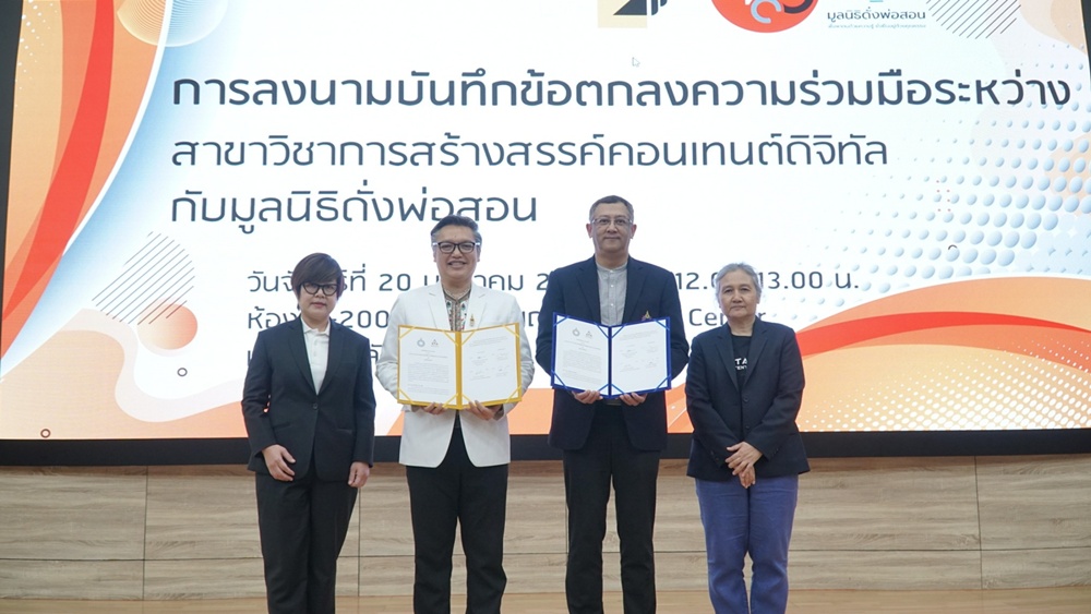 รองศาสตราจารย์ ดร.กฤษณ์ ทองเลิศ คณบดีวิทยาลัยนิเทศศาสตร์ มหาวิทยาลัยรังสิต และคุณณัฐวรรธน์ ภรนรา ประธานมูลนิธิดั่งพ่อสอน ลงนามบันทึกข้อตกลงร่วมกัน ระหว่าง สาขาวิชาการสร้างสรรค์คอนเทนต์ดิจิทัล วิทยาลัยนิเทศศาสตร์ มหาวิทยาลัยรังสิต กับ มูลนิธิ ดั่งพ่อสอน เพื่อพัฒนาความเป็น “จิตอาสา จิตสาธารณะ” การทำงานเพื่อสังคมให้แก่นักศึกษา โดยผ่านกิจกรรมการรณรงค์การสื่อสารเพื่อสังคมภายใต้ชื่อ “เติมใจให้เต็ม” ซึ่งเป็นส่วนหนึ่งของรายวิชาสื่อดิจิทัลเพื่อการขับเคลื่อนสังคม และมีเป้าหมายเพื่อสร้างคุณลักษณะความเป็นบัณฑิตที่มี “จิตสาธารณะ” เป็นนักสื่อสารที่รับผิดชอบต่อสังคม ณ ห้องออดิทอเรียม (6-200) อาคาร Student Center (อาคาร 6) มหาวิทยาลัยรังสิต