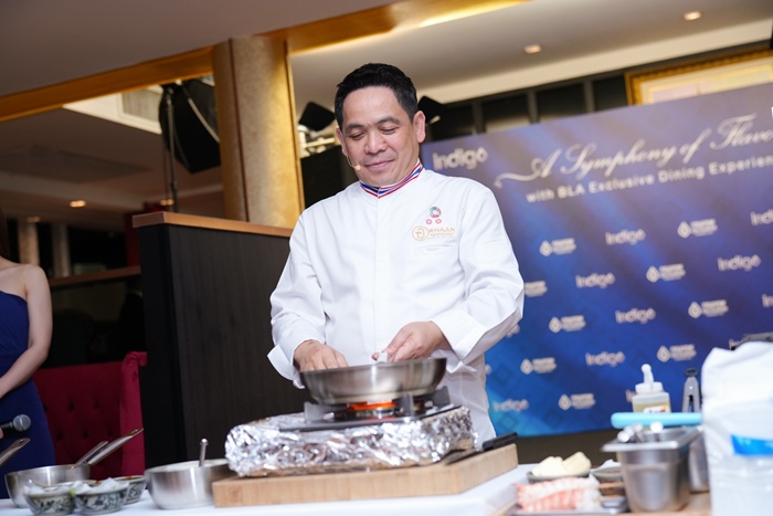 “การจัดงานในครั้งนี้ เราได้เลือกร้าน R-Haan ร้านอาหารไทยมิชลินสตาร์ 2 ดาว แบบ Fine Dining ที่ถ่ายทอดภูมิปัญญาไทยแท้ดั้งเดิมผ่านตำรับอาหารพื้นบ้านและตำรับอาหารชาววังด้วยวัตถุดิบที่ดีที่สุด โดยการดูแลของ เชฟชุมพล แจ้งไพร ที่หลายท่านรู้จักดีในนามของสุดยอดเชฟกระทะเหล็กอาหารไทย และในวันนี้เชฟชุมพล ยังได้รังสรรค์เมนูพิเศษ Indigo Exclusive Course เพื่อให้ทุกท่านได้สัมผัสประสบการณ์การลิ้มรสที่ท่านจะประทับใจไม่รู้ลืมอีกด้วย ผมเองรู้สึกตื่นเต้นที่จะได้สัมผัสเมนูอาหารต่าง ๆ จากเชฟชุมพล และเชื่อว่าหลายท่านคงจะรู้สึกเช่นเดียวกัน” โชนกล่าวต้อนรับ