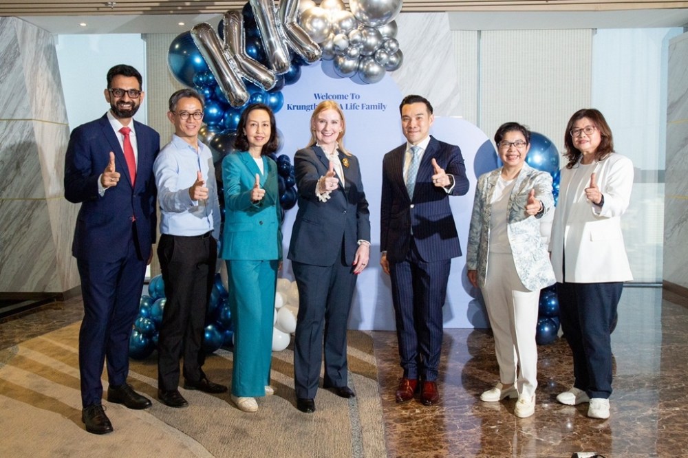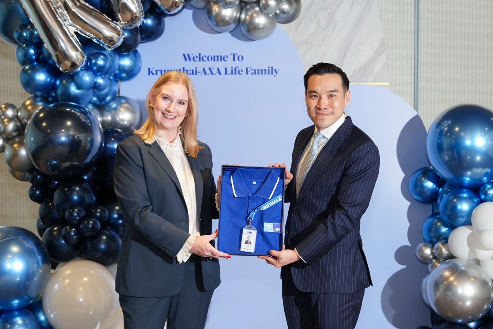 บมจ.กรุงไทย-แอกซ่า ประกันชีวิต นำโดยคุณแซลลี่ โอฮาร่า ประธานเจ้าหน้าที่บริหาร แอกซ่า ภูมิภาคเอเชียอาคเนย์ และประเทศเกาหลีใต้ (คนซ้าย) พร้อมด้วยคณะผู้บริหารระดับสูงและพนักงาน ร่วมให้การต้อนรับ คุณณัฐพิสิษฐ์ ครุฑครองชัย (คุณเคเค) นั่งเก้าอี้ประธานเจ้าหน้าที่บริหาร บมจ.กรุงไทย-แอกซ่า ประกันชีวิต (คนขวา) อย่างเป็นทางการในวันที่ 3 กุมภาพันธ์ 2568