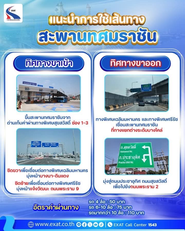 การทางพิเศษแห่งประเทศไทย (กทพ.) เปิดให้บริการ สะพานทศมราชัน ซึ่งเป็นส่วนหนึ่งของโครงการ ทางพิเศษพระราม 3 – ดาวคะนอง – วงแหวนรอบนอกกรุงเทพฯ ด้านตะวันตก เพื่อช่วยบรรเทาปัญหาจราจรและเพิ่มความสะดวกในการเดินทางระหว่างกรุงเทพฯ และปริมณฑล โดยมีรายละเอียดการใช้เส้นทาง ดังนี้