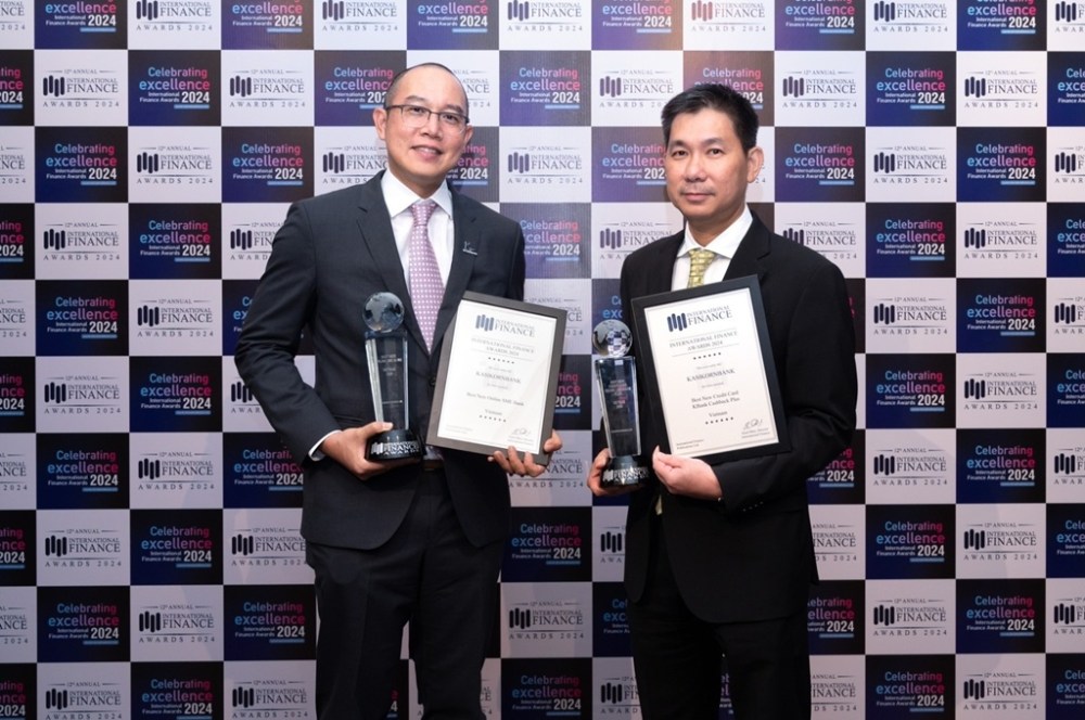 Mr. Rungruang Sukkirdkijpiboon (right), President, and Mr. Chat Luangarpa (left), Executive Vice President, represented KBank in receiving two major awards: Vietnam’s Best New Credit Card and Best New Online SME Bank, from the International Finance Awards 2024. The awards reflect the Bank’s readiness to support and promote the potential of Vietnamese SMEs to grow sustainably, and represent another prominent step that reinforces the Bank’s leadership in the region, as it is committed to delivering financial service experiences that are secure, user friendly, and comprehensive for all customer segments, including retail, SMEs, and corporate businesses. The award presentation ceremony was recently organized by International Finance, a leading global business and financial magazine based in England, at the Waldorf Astoria Hotel, Bangkok.