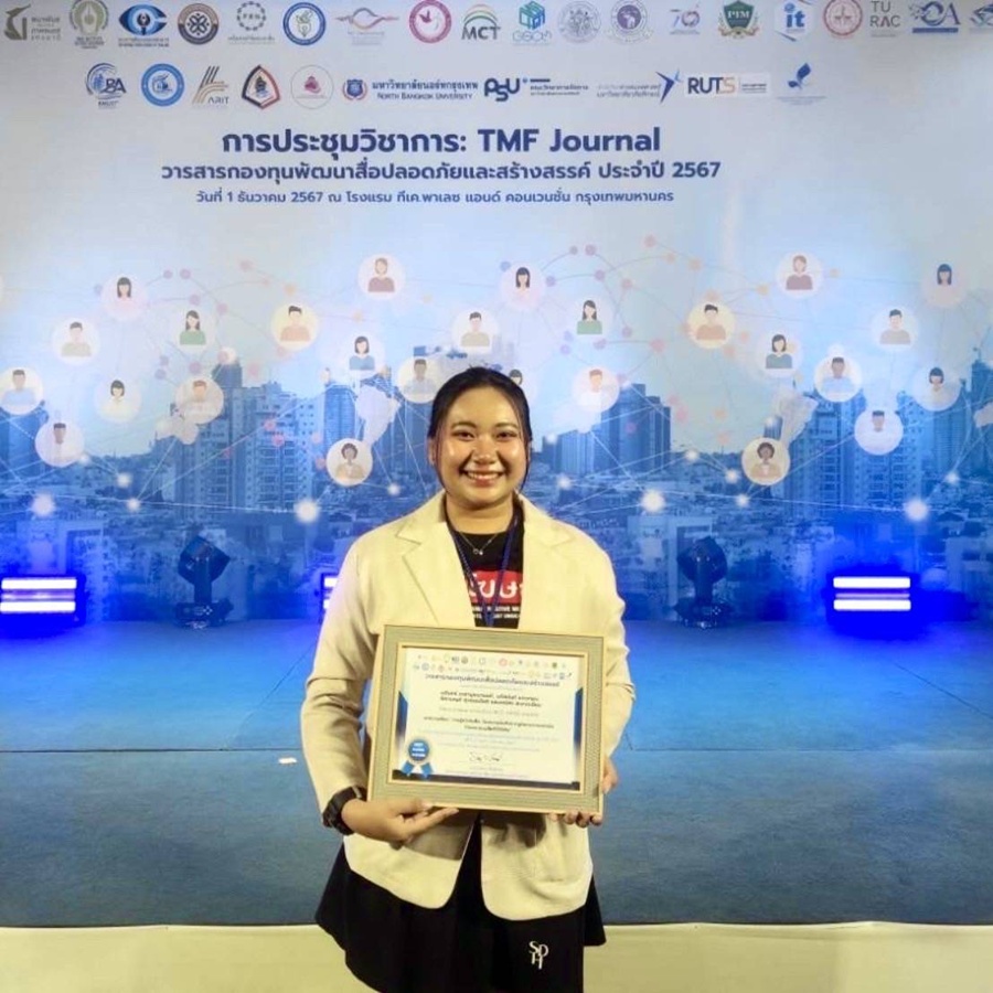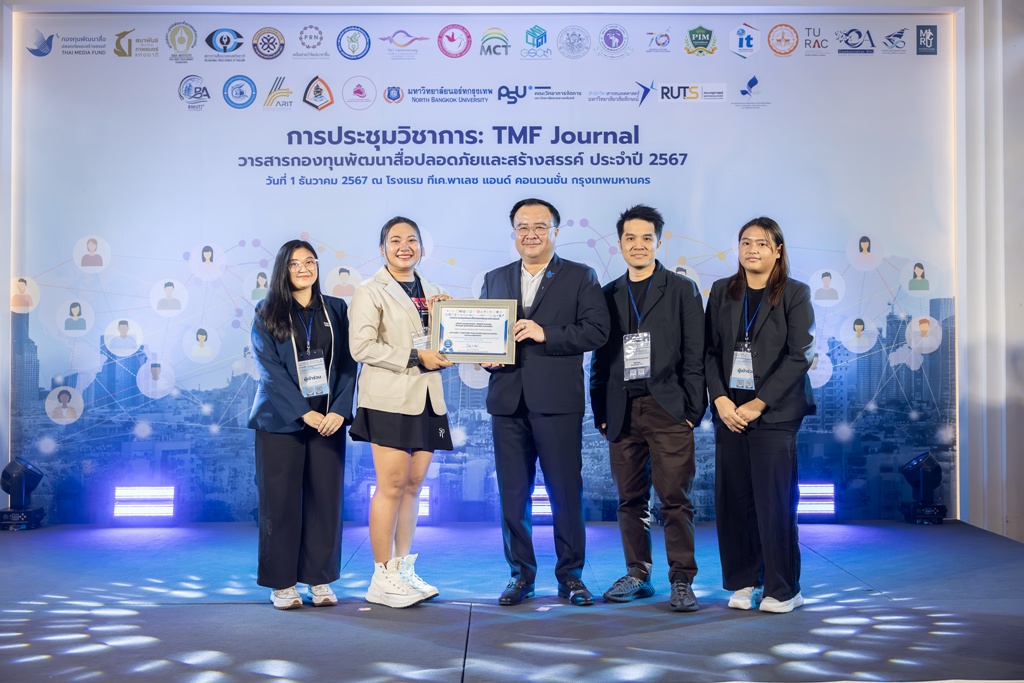 นักศึกษาสาขาวิชาการโฆษณาและสื่อสร้างสรรค์ วิทยาลัยนิเทศศาสตร์ มหาวิทยาลัยรังสิต คว้ารางวัลผลการวิจัยดีเด่น (Best Paper Award) บทความวิจัยเรื่อง “การรู้เท่าทันสื่อ: โฆษณาแฝงที่ปรากฏในรายการแข่งขันทำอาหารบนสื่อทีวีดิจิทัล” จากการประชุมวิชาการระดับชาติ TMF Journal ของวารสารกองทุนพัฒนาสื่อปลอดภัยและสร้างสรรค์ ครั้งที่ 3 ประจำปี 2567