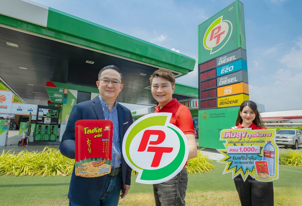 นายวิโรจน์ วชิรเดชกุล (ซ้าย) รองกรรมการผู้จัดการอาวุโส สายงานธุรกิจในประเทศ บริษัท ศรีนานาพร มาร์เก็ตติ้ง จำกัด (มหาชน) (SNNP) และ นายพร้อมศักดิ์ จรัญญากรณ์ (กลาง) กรรมการผู้จัดการ บริษัท แมกซ์ โซลูชัน เซอร์วิส จำกัด บริษัทในเครือ บมจ.พีทีจี เอ็นเนอร์ยี (PTG) ร่วมกันจัดแคมเปญพิเศษแจก “โลตัสขาไก่” สำหรับสมาชิก Max Card เพียงเติมน้ำมัน PT ชนิดใดก็ได้ครบ 500 บาท รับน้ำดื่มขวดใหญ่ ขนาด 1.5 ลิตร จำนวน 1 ขวด และถ้าเติมน้ำมันครบ 1,000 บาท จะได้รับขนมขาไก่โลตัส ขนาด 50 กรัม มูลค่า 12 บาท ฟรีอีก 1 ซอง และทุกการเติมน้ำมัน 900 บาท ถัดไป จะได้รับน้ำดื่มเพิ่มอีก 1 ขวด เพื่อให้ทุกการเดินทางเต็มไปด้วยความสุข ความสดชื่น และความอร่อย ตั้งแต่วันนี้ถึง 30 เมษายน 2568 หรือจนกว่าสินค้าจะหมด