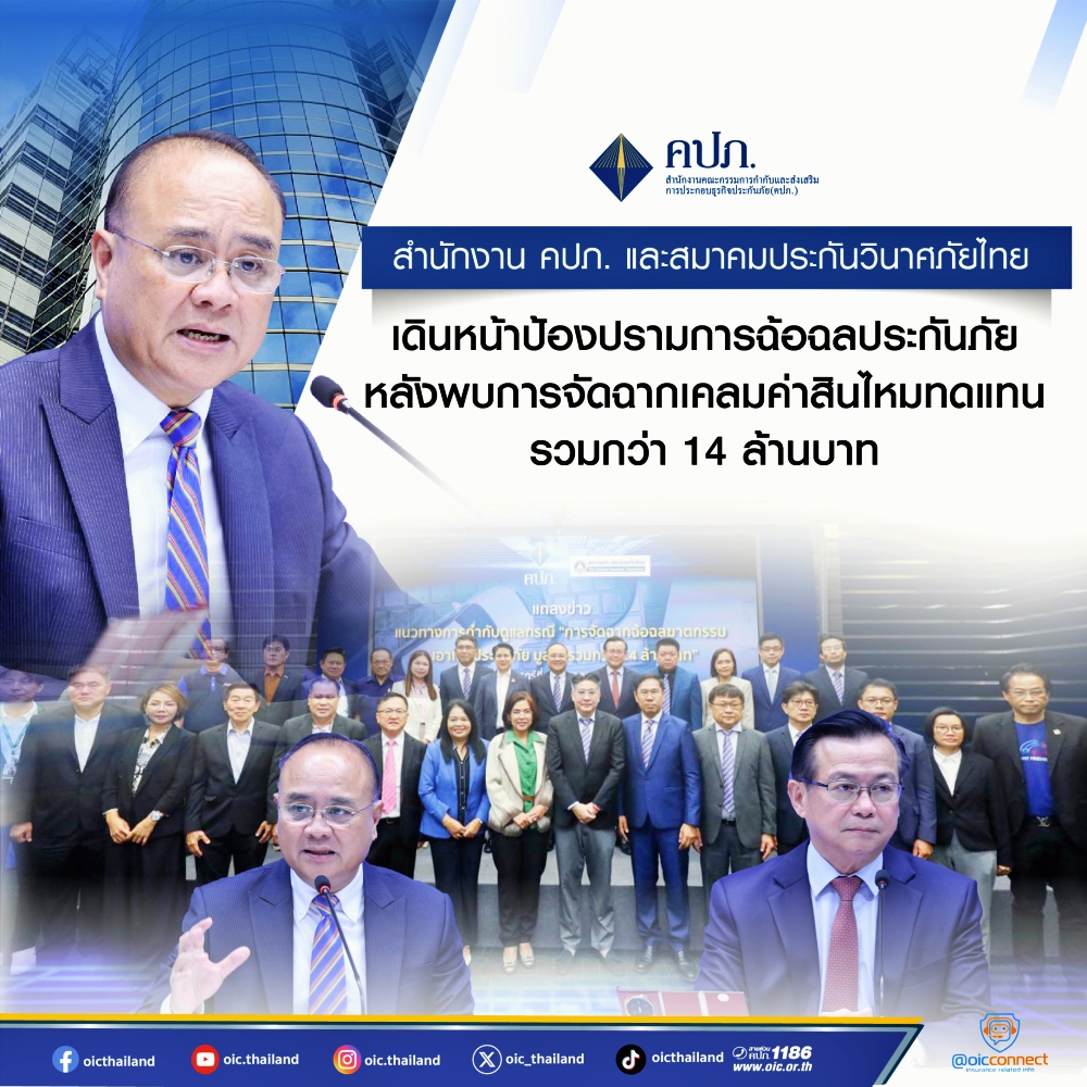 “สำนักงาน คปภ. มีความมุ่งมั่นในการพัฒนาอุตสาหกรรมประกันภัยไทยให้เติบโตอย่างมั่นคง ควบคู่กับการป้องกันการฉ้อฉลประกันภัย โดยจะมีการพัฒนาระบบฐานข้อมูลรายงานการฉ้อฉลด้านการประกันภัย ด้วยระบบปัญญาประดิษฐ์ (AI) เพื่อใช้ตรวจจับกรณีที่มีความผิดปกติให้มีประสิทธิภาพ แม่นยำ และรวดเร็วได้แบบ Real Time แต่ไม่เป็นอุปสรรคต่อการคุ้มครองประชาชนที่มีการเรียกสินไหมโดยสุจริต เพื่อให้ประชาชนสามารถใช้ระบบประกันภัยเป็นเครื่องมือในการบริหารความเสี่ยงได้อย่างมีประสิทธิภาพต่อไป” เลขาธิการ คปภ. กล่าวในตอนท้าย