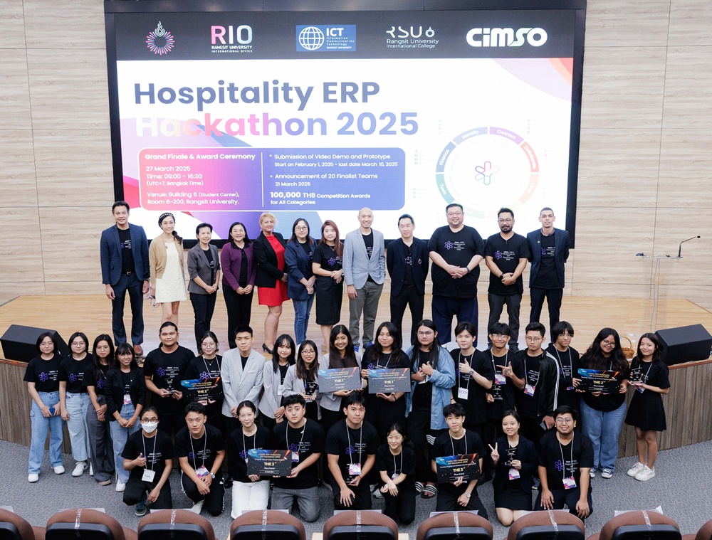 สาขาวิชาเทคโนโลยีสารสนเทศและการสื่อสาร วิทยาลัยนานาชาติ ร่วมกับสำนักงานนานาชาติ และบริษัท CiMSO Southeast Asia, Co., Ltd. (ผู้เชี่ยวชาญด้านการทำระบบ ERP Software สำหรับธุรกิจ hospitality และธุรกิจบริการอื่นๆ) จัดการแข่งขัน Hospitality ERP Hackathon 2025 ชิงเงินรางวัลกว่า 100,000 บาท โดยได้รับเกียรติจาก ผศ.ดร.ปถมาพร สุกปลั่ง รองอธิการบดีฝ่ายวิชาการ นายจรูญ เชดเลอร์ ผู้ช่วยอธิการบดีฝ่ายการต่างประเทศ และ ผศ.ดร.กฤษฎา ศรีแผ้ว คณบดีวิทยาลัยนานาชาติ ให้เกียรติเป็นประธานในการแข่งขัน