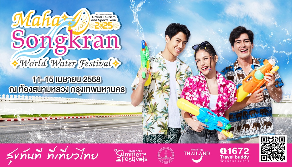 กระทรวงการท่องเที่ยวและกีฬาโดย การท่องเที่ยวแห่งประเทศไทย (ททท.) ขอเชิญร่วมฉลองสงกรานต์สุดยิ่งใหญ่ “Maha Songkran World Water Festival 2025” ณท้องสนามหลวง ในระหว่างวันที่ 11-15 เมษายน ศกนี้ ร่วมสาดความสุขรับปีใหม่ไทย พร้อมตั้งเป้าประเทศไทยสู่ 1 ใน 10 ประเทศเฟสติวัลระดับโลก