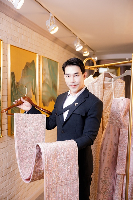 “หากถามว่าอะไรคือแรงบันดาลใจในการดีไซน์ชุด ต้องบอกเลยว่าเกิดจากประสบการณ์ที่ผมได้ไปสถานที่ต่าง ๆ และวาดภาพเก็บเอาไว้ รวมถึงเรื่องราวความประทับใจในยุคสมัยที่ผ่านมา ตั้งแต่ยุค 90 จนถึงยุคปัจจุบัน หลายสิ่งหลายอย่างทำให้เราเรียนรู้พฤติกรรมของผู้บริโภค ทำให้เรารู้ว่ามีปัจจัยอะไรบ้างที่เจ้าสาวหลายคนอยากเลือกใช้ชุดของเรา แล้วจึงนำมาปรับเปลี่ยนให้เข้ากับเทรนด์และความสามารถในการทำงานของเรา ซึ่งหากพูดถึงชุดไทยที่สร้างลายเซ็นและสร้างชื่อแจ้งเกิดให้ผมเลยคือ ชุดไทยประยุกต์สีชมพู ซึ่งได้รับเลือกให้ขึ้นปกนิตยสาร WE โดยมีดาราชื่อดังอย่าง ณฐพร เตมีรักษ์ มาเป็นนางแบบสวมใส่ขึ้นปก เป็นชุดไทยที่มีความหวาน ละมุน ทำให้หลายคนสนใจและมีเจ้าสาวส่งข้อความเข้ามาว่าอยากจะสวมใส่ชุดนี้ เรียกว่า ได้รับความนิยมเป็นอย่างมาก”