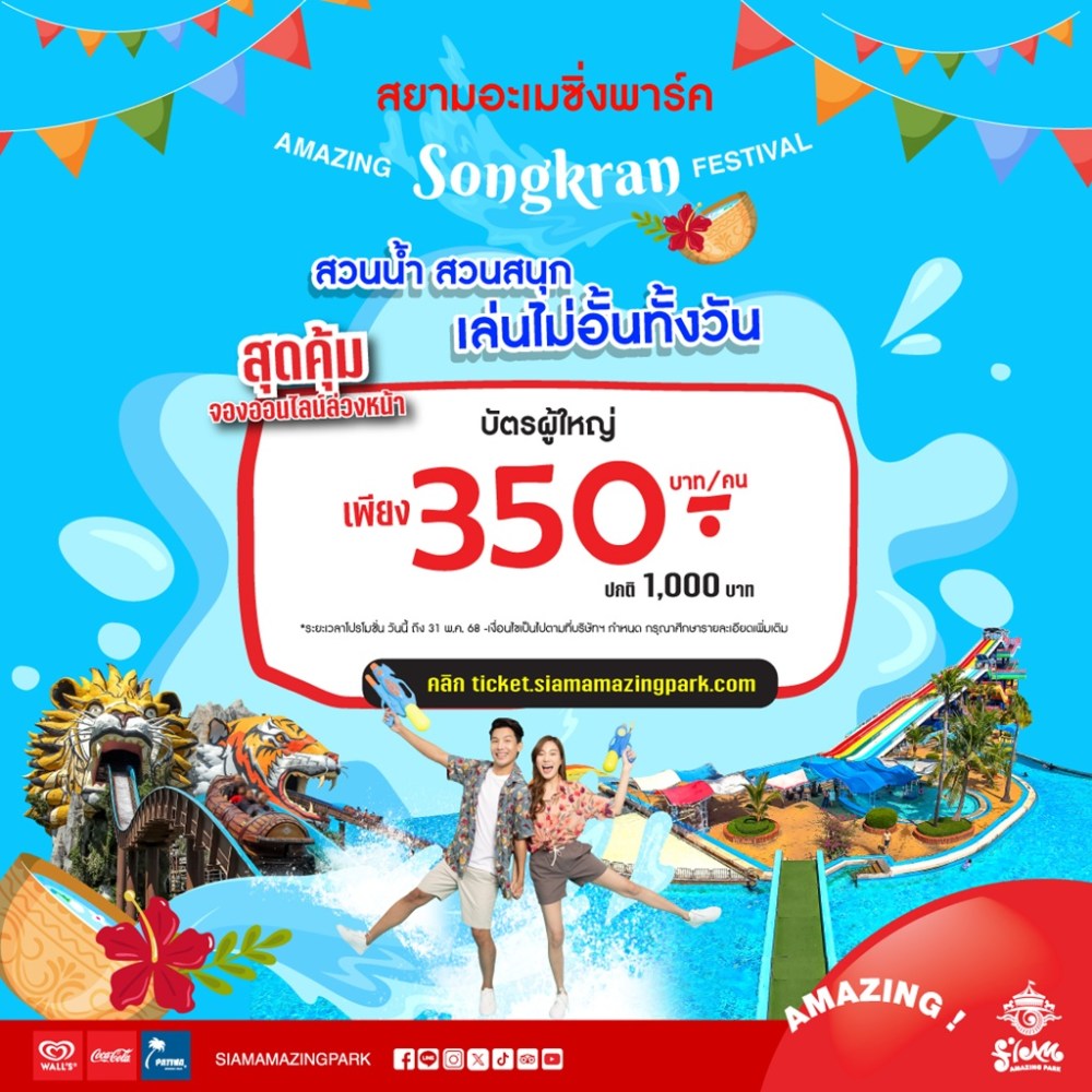 สวัสดีปีใหม่ไทย เที่ยวสงกรานต์ดับร้อนที่สยามอะเมซิ่งพาร์ค 12-15 เมษายน 2568 ร้อนขนาดนี้ อะไรจะดีไปกว่าชุ่มฉ่ำใน “สวนน้ำ” ขนาดใหญ่ สนุกกับสไลเดอร์ยักษ์ ซูเปอร์สไปรัล ไซแอม ลากูน และทะเล-กรุงเทพฯ ทะเลเทียมที่ใหญ่ที่สุดในโลก รับรองโดยกินเนสเวิลด์เรคคอร์ดส สุดมันส์กับ “สวนสนุก” ที่รวบรวมเครื่องเล่นระดับโลกมากมาย อาทิ วอร์เท็กซ์ บูมเมอแรง ล็อคฟลูม ไซแอมทาวเวอร์ และพิเศษที่สุดกับไฮไลท์ใหม่ น้ำตกขนาดยักษ์ สวยงามอลังการ ร่มรื่น จุดเช็คอินล่าสุดที่ห้ามพลาด