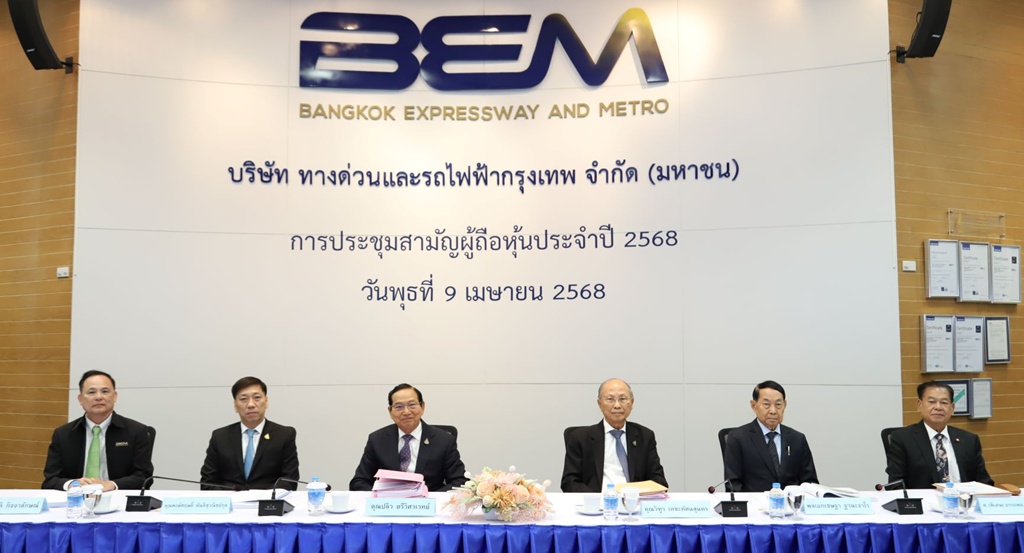 บริษัท ทางด่วนและรถไฟฟ้ากรุงเทพ จำกัด (มหาชน) (BEM) ผู้ให้บริการทางพิเศษและรถไฟฟ้า MRT สายสีน้ำเงินและสายสีม่วงจัดประชุมสามัญผู้ถือหุ้นประจำปี 2568 ซึ่งเป็นการประชุมผ่านสื่ออิเล็กทรอนิกส์ หรือ E-Meeting โดยมี นายปลิว ตรีวิศวเวทย์ ประธานกรรมการบริษัท เป็นประธานในการประชุม พร้อมด้วยคณะกรรมการบริษัท ซึ่งที่ประชุมได้มีมติอนุมัติจ่ายเงินปันผล ในอัตราหุ้นละ 0.15 บาท กำหนดจ่ายในวันที่ 2 พฤษภาคม 2568