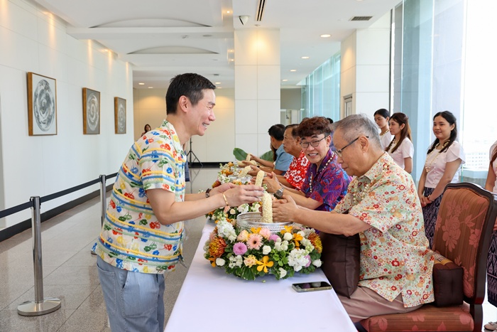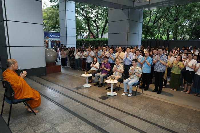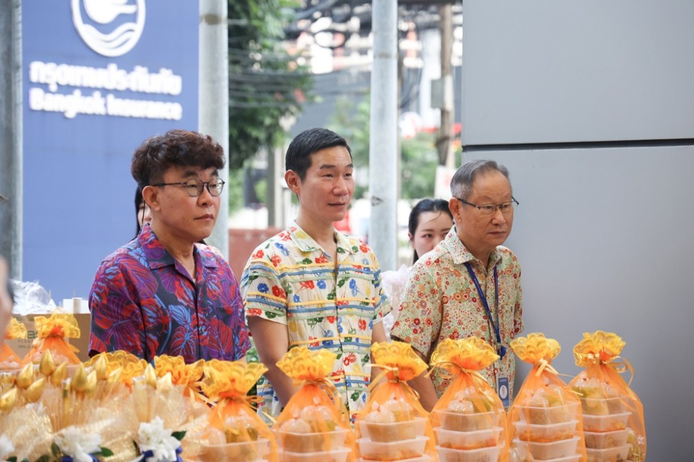 จากนั้นได้ถวายภัตตาหารและจตุปัจจัยไทยธรรมแด่พระสงฆ์ จำนวน 9 รูป พร้อมไหว้ศาลพระพรหมและองค์ครุฑที่ประดิษฐาน ณ สำนักงาน เพื่อความเป็นสิริมงคล นอกจากนี้ ยังได้จัดพิธีรดน้ำดำหัวขอพรจากผู้บริหาร พร้อมร่วมกันแต่งกายชุดไทยเพื่อร่วมสืบสานประเพณีสงกรานต์ของไทยในช่วงโอกาสใกล้เทศกาลสงกรานต์ ณ อาคารกรุงเทพประกันภัย สำนักงานใหญ่ ถ.สาทรใต้ เมื่อวันที่ 8 เมษายน 2568