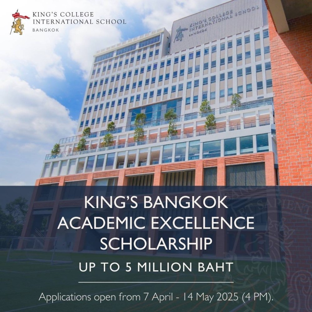 ทุน King’s Bangkok Academic Excellence Scholarship ปีที่ 3 เปิดรับสมัครตั้งแต่วันที่ 7 เม.ย. ถึง 14 พ.ค. 2025 (ปิดรับสมัครเวลา 16:00 น.) สามารถศึกษาข้อมูลเพิ่มเติมและส่งใบสมัครได้ที่ https://n.openlink.co/kingsbangkokscholarship