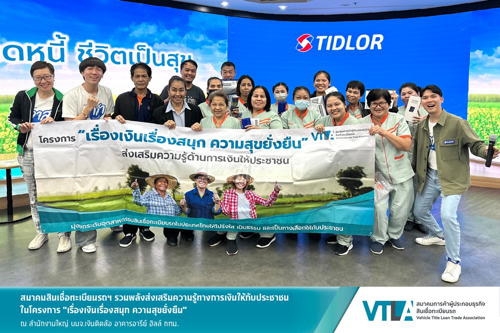 โครงการ “เรื่องเงินเรื่องสนุก ความสุขยั่งยืน” จัดโดย สมาคมการค้าผู้ประกอบธุรกิจสินเชื่อทะเบียนรถ (VTLA) วัตถุประสงค์เพื่อส่งเสริมความรู้ทางการเงินขั้นพื้นฐานให้กับชาวบ้านชาวชุมชนทั่วประเทศ โดยใช้หลักสูตร “ปลดหนี้ ชีวิตเป็นสุข” และ “ออมเงินง่ายๆ ที่ใครๆ ก็ทำได้” ผ่านความร่วมมือของสมาชิกสมาคมฯ ซึ่งปัจจุบันสมาคมมีสมาชิกผู้ประกอบการที่ได้รับใบอนุญาตจากธนาคารแห่งประเทศไทยจำนวนรวม 16 ราย มีสาขารวมกันทั่วประเทศกว่า 18,000 สาขา และมีฐานลูกค้ารวมกันกว่า 6 ล้านราย นอกจากนี้ทางสมาคมฯ ขอเรียนเชิญผู้ประกอบการสินเชื่อทะเบียนรถรายอื่นๆ สมัครเป็นสมาชิกของสมาคมฯ ได้ที่เบอร์โทรศัพท์ 065-919-0644 หรือเยี่ยมชมรายละเอียดเพิ่มเติมเกี่ยวกับสมาคมฯ ได้ที่ www.vtla.or.th