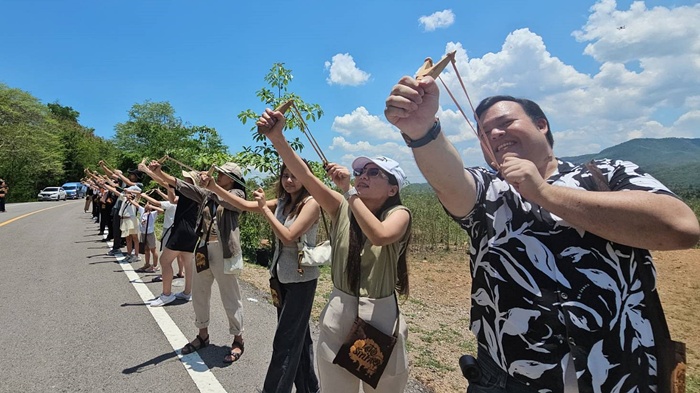เรียนรู้กิจกรรมเสือปั้นไข่ สอนการทำไข่เค็มหมักดอกอัญชัญ การร่วมอนุรักษ์ป่าด้วยการนำเมล็ดพันธ์พืชไม้ยืนต้นไปปั้นดินยิงหนังสติ๊กเพื่อปลูกป่าโดย พี่น้อย – คุณสุเทพ พิมพ์ศิริ เป็นกิจกรรมสุดท้าย”