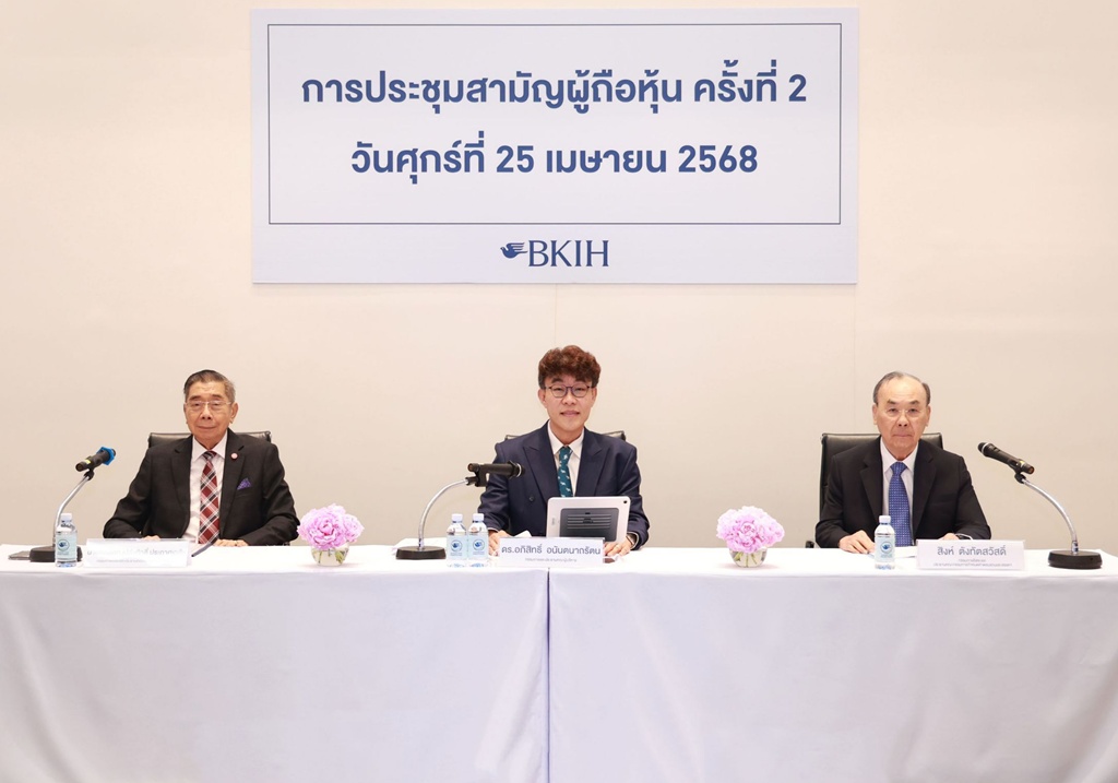 บริษัท บีเคไอ โฮลดิ้งส์ จำกัด (มหาชน) หรือ BKIH จัดประชุมสามัญผู้ถือหุ้น ครั้งที่ 2 นำโดยดร.อภิสิทธิ์ อนันตนาถรัตน (กลาง) กรรมการและประธานคณะผู้บริหาร ทำหน้าที่เป็นประธานในการประชุมจากมติของที่ประชุมผู้ถือหุ้น พร้อมด้วยคณะกรรมการ (จากซ้ายไปขวา) นายกองเอกเปล่งศักดิ์ ประกาศเภสัช กรรมการอิสระและประธานคณะกรรมการตรวจสอบ และนายสิงห์ ตังทัตสวัสดิ์ กรรมการอิสระและประธานคณะกรรมการกำหนดค่าตอบแทนและสรรหา โดยที่ประชุมฯ มีมติอนุมัติเห็นชอบทุกวาระการประชุมตามที่คณะกรรมการเสนอ ณ อาคารกรุงเทพประกันภัย สำนักงานใหญ่ ถนนสาทรใต้ เมื่อวันที่ 25 เมษายน 2568