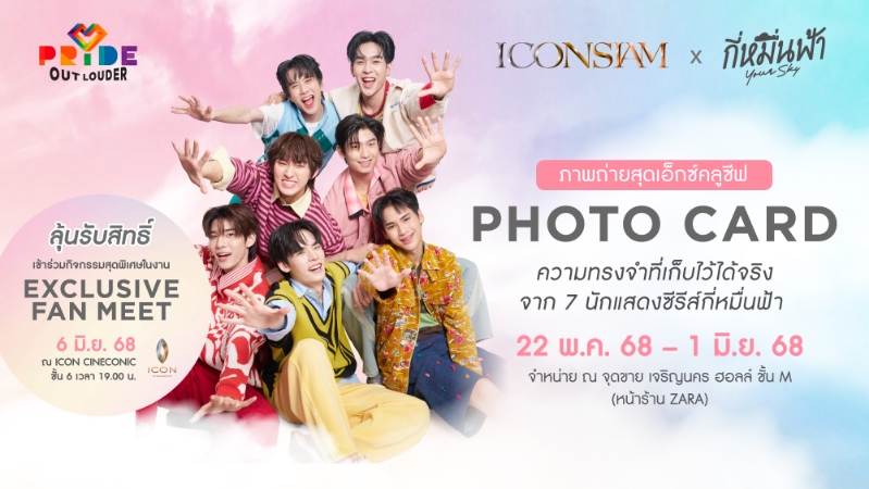 หนึ่งในไฮไลต์ของแคมเปญ ICONSIAM PRIDE OUT LOUDER 2025 คือการร่วมผลักดันกระแสซีรีส์ Y วัฒนธรรมใหม่ที่กำลังได้รับความสนใจจากทั่วโลก จนกลายเป็น Soft Power ไทยที่สร้างปรากฏการณ์ใหม่ให้กับวงการบันเทิงในระดับสากล โดยไอคอนสยามร่วมกับ ซีรีส์ “กี่หมื่นฟ้า” ซีรีส์บอยเลิฟจากค่าย Mandee Work (มันดีเวิร์ค) ที่ได้รับความนิยมอย่างล้นหลาม ครั้งแรกกับการจับมือทำ Special Card Box Set ให้แฟน ๆ ได้สะสม พร้อมจัด Exclusive Fan Meet พบกับโชว์สุดเซอร์ไพรส์จาก 7 นักแสดง โทมัส-ธีร์ทัศน์ จึงมณีรัตน์, ก้อง-ก้องภพ จิโรจน์มนตรี, ตี๋ตี๋-วันพิชิต นิมิตภาคภูมิ, ป๋อ-ศุภการ จิรโชติกุล, อู่อู๋-ธนภูมิ เศรษฐสิทธิกุล, เซฟ-วรพงษ์ วาเลาะ และ แพทจิ-จิรชาติ บุษปวนิช พบกับสิทธิพิเศษ HI-BYE แบบใกล้ชิด กิจกรรมแจกลายเซ็นบนกล่อง Special Card Box Set ถ่ายภาพกรุ๊ปช็อตกับนักแสดงทั้ง 7 ลุ้นเป็น Lucky Fan ร่วมสนุกบนเวที และลุ้นของรางวัลสุดพิเศษ ในวันที่ 6 มิถุนายน 2568 ณ โรงภาพยนตร์ ICON CINECONIC ไอคอนสยาม ชั้น 6 โดยแฟน ๆ สามารถรับสิทธิ์เข้าร่วมงาน Exclusive Fan Meet “กี่หมื่นฟ้า” ได้ 2 วิธี ดังนี้