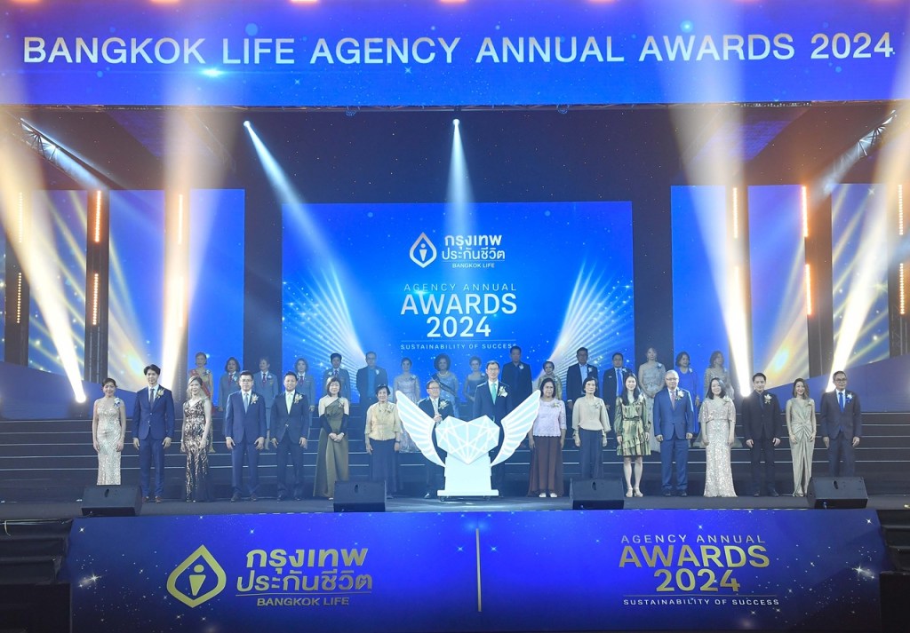 บริษัท กรุงเทพประกันชีวิต จำกัด (มหาชน) จัดงานฉลอง Bangkok Life Agency Annual Awards ประจำปี 2024 ภายใต้แนวคิด “Sustainability of Success” เพื่อเชิดชูเกียรติและแสดงความยินดีกับความสำเร็จของผู้รับรางวัล “เพชรน้ำเอก” รวมถึงผู้รับรางวัลคุณวุฒิสำคัญ และผู้พิชิตรางวัลอันทรงเกียรติ โดยมี ดร.ศิริ การเจริญดี ประธานกรรมการ เป็นประธานเปิดงาน พร้อมด้วย นายโชน โสภณพนิช กรรมการผู้จัดการใหญ่และประธานเจ้าหน้าที่บริหาร คณะกรรมการ ผู้บริหารระดับสูง และนายจักรพงศ์ แสงแก้ว ผู้ช่วยผู้จัดการใหญ่ สายงานตัวแทนและที่ปรึกษาทางการเงิน ร่วมแสดงความยินดี ณ ห้องรอยัล จูบิลี่ บอลรูม อาคารชาเลนเจอร์ อิมแพ็ค เมืองทองธานี เมื่อเร็วๆนี้