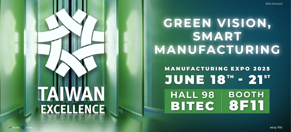 กรุงเทพมหานคร ประเทศไทย — Taiwan Excellence ยกขบวนนวัตกรรมโซลูชันระบบอัตโนมัติอัจฉริยะเพื่อความยั่งยืนมามากกว่า 16 รายการ จาก 12 บริษัทที่ได้รับรางวัลTaiwan Excellence มาที่งาน Manufacturing Expo 2025 วันที่ 18 – 21 มิถุนายน 2568 เวลา 10.00 – 18.00 น. ที่บูธ 8F11 ฮอลล์ 98 ณ ศูนย์นิทรรศการและการประชุมไบเทค บางนา