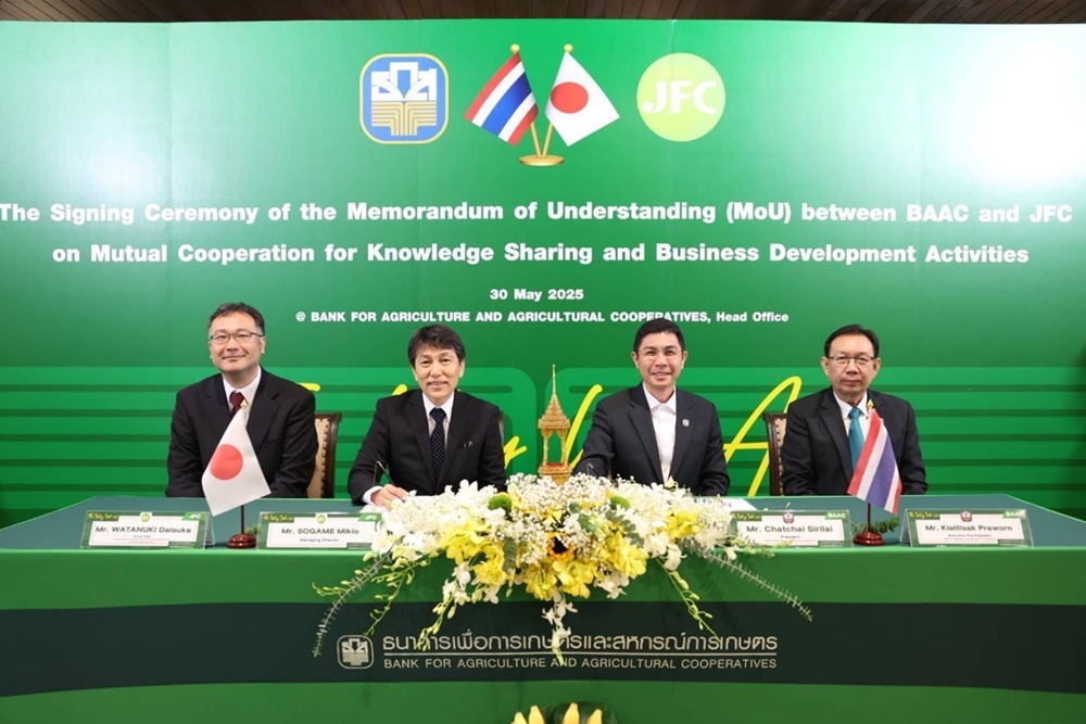 วันนี้ (30 พฤษภาคม 2568) นายฉัตรชัย ศิริไล ผู้จัดการ ธนาคารเพื่อการเกษตรและสหกรณ์การเกษตร (ธ.ก.ส.) พร้อมด้วย Mr. Mikio Sogame Managing Director Japan Finance Corporation (JFC) สถาบันการเงินของรัฐบาลญี่ปุ่นที่มีบทบาทหลักในการสนับสนุนภาคเกษตรกรรม ธุรกิจรายย่อย และผู้ประกอบการ SMEs