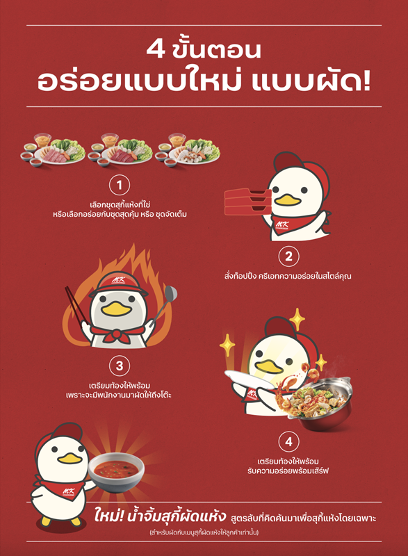 ทั้งหมดกลายเป็นแรงบันดาลใจสู่แคมเปญใหม่ “สุกี้ผัดแห้งเอ็มเค” ที่เกิดจาก Customer Insight อย่างแท้จริง ผ่านการนำเสนอความคุ้มค่าและปลดล็อคตำนานหม้อแดงกว่า 39ปี หม้อเดิมที่ทุกคนคุ้นเคยในร้าน MK Restaurants มาร่วมสร้างประสบการณ์ใหม่ให้กับลูกค้า โดยการครีเอทสิ่งที่มีอยู่เดิมนี้ให้กลายเป็นสิ่งใหม่ที่มีคุณค่าและน่าสนใจยิ่งขึ้น