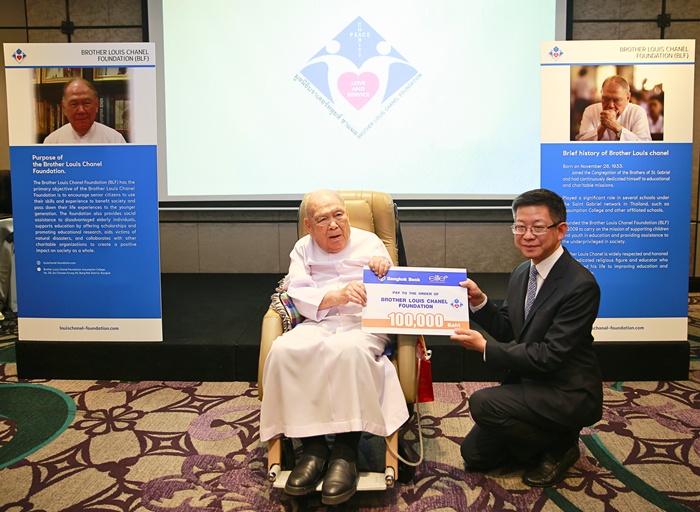 โดยมี ภราดาวิริยะ ฉันทวโรดม มูลนิธิบราเดอร์หลุยส์ ชาแนล รับมอบเงินบริจาคจากมอบเงินบริจาค จาก ดร.กอบศักดิ์ ภูตระกูล ธนาคารกรุงเทพ , คุณศุภลักษณ์ อัมพุช ประธานกรรมการบริหาร กลุ่มเดอะมอลล์ กรุ๊ป, ตัวแทนจาก Wellness We Care by Mega We Care , นพ. ชเนษฎ์ ศรีสุโข จาก MALI Clinic Silom (SCMC), ดร.ชญณา ศิริภิรมย์ จาก Chayanna Silk & Craft , ดร.สวัสดิ์ เก่งชน ตัวแทนจาก Southern Group เป็นต้น