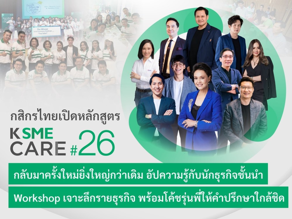 K SME CARE รุ่น 26 อบรมทุกวันศุกร์ ระยะเวลา 3 เดือน นักธุรกิจที่สนใจเข้าร่วมอบรม สามารถสมัครได้ตั้งแต่วันที่ 5 มิ.ย. 68 – 5 ก.ค. 68 ศึกษารายละเอียด ข้อจำกัด และเงื่อนไขเพิ่มเติมได้ที่ www.kasikornbank.com/ksmecare และจะประกาศผลผู้ผ่านการคัดเลือกในวันที่ 10 ก.ค. 68 (การพิจารณาขึ้นอยู่กับดุลยพินิจของคณะกรรมการ และคำตัดสินของคณะกรรมการถือเป็นที่สิ้นสุด) สอบถามเพิ่มเติมได้ที่ K BIZ Contact Center 02-8888822 หรือ Line OA: @ksmecare