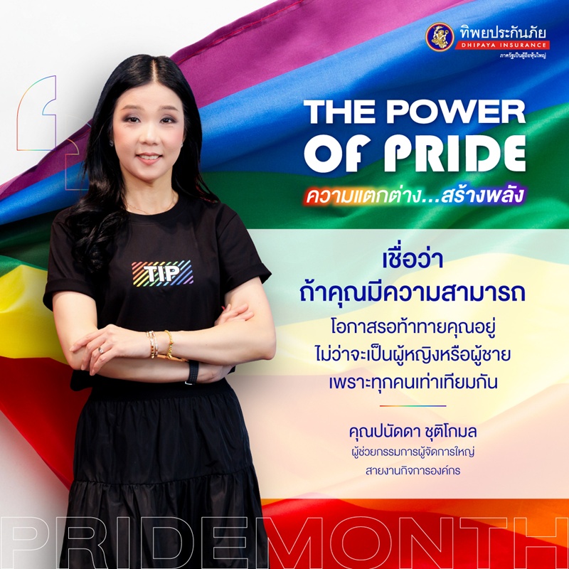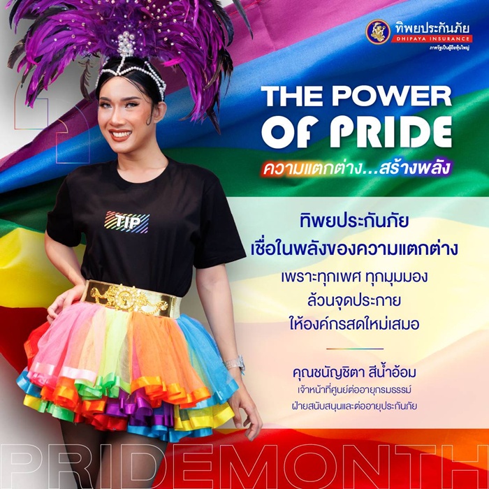 THE POWER OF PRIDE ความแตกต่าง…สร้างพลัง ไม่ใช่เพียงการเฉลิมฉลองความหลากหลาย แต่ยังเป็นการส่งต่อความเข้าใจ ผ่านการพัฒนาผลิตภัณฑ์ที่ตอบโจทย์ความต้องการของสังคมที่เปลี่ยนไป เพื่อครอบคลุมและเข้าถึงได้มากขึ้นสำหรับกลุ่ม LGBTQ+ และทุกคนที่มีความหลากหลายในชีวิต ด้วยผลิตภัณฑ์ TIP Rainbow Car – ประกันภัยรถยนต์ชั้น 1 ที่ออกแบบมาเพื่อทุกความหลากหลาย และ TIP Rainbow Care – ประกันสุขภาพและอุบัติเหตุส่วนบุคคล ที่แคร์ทุกความต้องการของคนรักสุขภาพ เพราะเรารู้ว่าความรักมีหลายรูปแบบ ทุกแผนความคุ้มครองจาก TIP Rainbow เปิดกว้างให้ลูกค้าได้ “มอบสิทธิความคุ้มครองให้คนที่คุณรัก” ได้อย่างเสรี ไม่จำกัดเพศ ไม่จำกัดความสัมพันธ์ ไม่จำกัดสายเลือด ให้ทุกคู่รัก ทุกครอบครัว มีสิทธิเลือกสิ่งที่ดีที่สุดให้กันอย่างเท่าเทียม เพราะความรัก…ควรได้รับการดูแลอย่างเข้าใจ