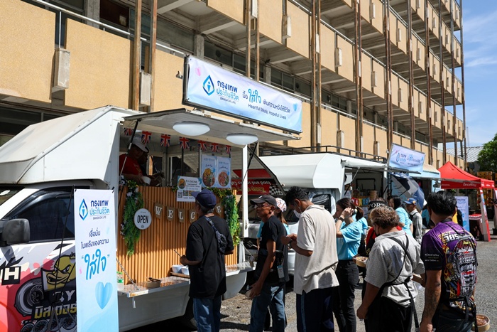 โอกาสนี้ บริษัท กรุงเทพประกันชีวิต จำกัด (มหาชน) เข้าร่วมเป็นส่วนหนึ่งด้วยการสนับสนุนในโครงการ “Heartful Meals, Hopeful Lives หรือ มื้อใส่ใจ เติมความหวังให้ชีวิต” ให้คนไร้บ้านได้มีโอกาสเลือกมื้ออาหารที่อยากทาน โดยจัดเตรียม Food Truck 3 คัน มอบอาหาร 4 เมนูให้เลือก เป็นข้าวกระเพราไก่ไข่ดาว ข้าวหมูทอดทงคัตสึ เย็นตาโฟ และก๋วยเตี๋ยวต้มยำ รวมทั้งยังมีไอศกรีมซอฟท์เสิร์ฟรสวนิลาและโยเกิร์ต ให้คนไร้บ้านกว่า 300 คนที่แวะเวียนเข้ามา รวมถึงทีมแพทย์ พยาบาล และอาสาสมัครจากมูลนิธิกระจกเงา พร้อมทั้งยังเตรียมวงดนตรี พนักงานจิตอาสา ร่วมแสดงดนตรี ส่งมอบความสุข และความสนุกตลอดทั้งงาน ซึ่งถือเป็นความร่วมมือของทั้ง 3 องค์กร ได้แก่ กรุงเทพมหานคร กรุงเทพประกันชีวิต และมูลนิธิกระจกเงา ในการสร้างสรรค์กิจกรรมดีๆ เพื่อสังคม