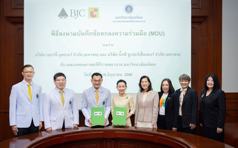 นางฐาปณี เตชะเจริญวิกุล ประธานเจ้าหน้าที่บริหารและกรรมการผู้จัดการใหญ่ บริษัท เบอร์ลี่ ยุคเกอร์ จำกัด (มหาชน)หรือกลุ่มบีเจซี บิ๊กซี พร้อมด้วยนางสาวธีรวรรณ ศรีสุข รองผู้จัดการใหญ่ฝ่ายธุรกิจสินค้าและบริการทางเวชภัณฑ์ (เครื่องมือแพทย์) และภญ.ปาณิสรา ไชยรุ่งรัตน์ รองผู้จัดการใหญ่ฝ่ายธุรกิจสินค้าและบริการทางเวชภัณฑ์ (ยา) ได้ร่วมลงนามในบันทึกข้อตกลงความร่วมมือ (MOU) กับคณะแพทยศาสตร์ศิริราชพยาบาล มหาวิทยาลัยมหิดล โดยมีศาสตราจารย์ นายแพทย์อภิชาติ อัศวมงคลกุล คณบดีคณะแพทยศาสตร์ศิริราชพยาบาล ศาสตราจารย์ ดร.นายแพทย์ยงยุทธ ศิริวัฒนอักษร ผู้อำนวยการโรงพยาบาลศิริราช และรองศาสตราจารย์ นายแพทย์ยงชัย นิละนนท์ ประธานศูนย์โรคหลอดเลือดสมองศิริราช ร่วมเป็นผู้แทนลงนามจากฝั่งศิริราช เพื่อขับเคลื่อนภารกิจร่วมกันในการเสริมสร้างองค์ความรู้ และยกระดับคุณภาพชีวิตของประชาชนในเรื่องโรคหลอดเลือดสมอง เมื่อวันที่ 16 มิถุนายน 2568 ณ ตึกอำนวยการ ชั้น 2 รพ.ศิริราช
