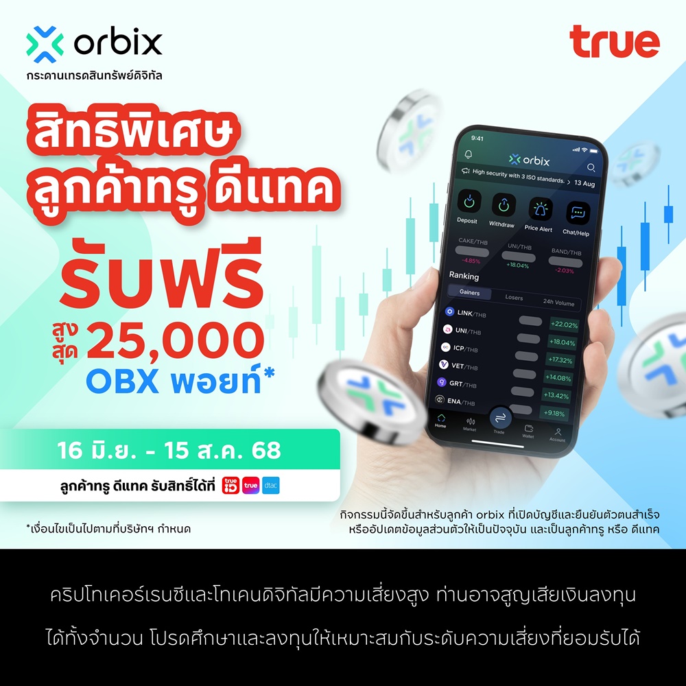 ออร์บิกซ์ เปิดตัว “OBX Point” โปรแกรมสะสมคะแนน (Loyalty Program) ให้ผู้ใช้งานกดรับคะแนนได้ทุกวันรับของรางวัลสุดพิเศษตลอดทั้งปี พร้อมมอบประสบการณ์ใหม่ที่คุ้มค่าและแตกต่างให้กับนักลงทุนทุกกลุ่ม พิเศษสำหรับลูกค้าทรูและดีแทค ที่เปิดบัญชีออร์บิกซ์และเทรดครั้งแรกบนแพลตฟอร์ม ออร์บิกซ์โดยไม่มีขั้นต่ำ รับคะแนนสะสมเพิ่มได้ถึง 2 ต่อ รวมสูงสุด 25,000 คะแนน สามารถร่วมกิจกรรมได้ตั้งแต่ 16 มิถุนายน 2568 – 15 สิงหาคม 2568