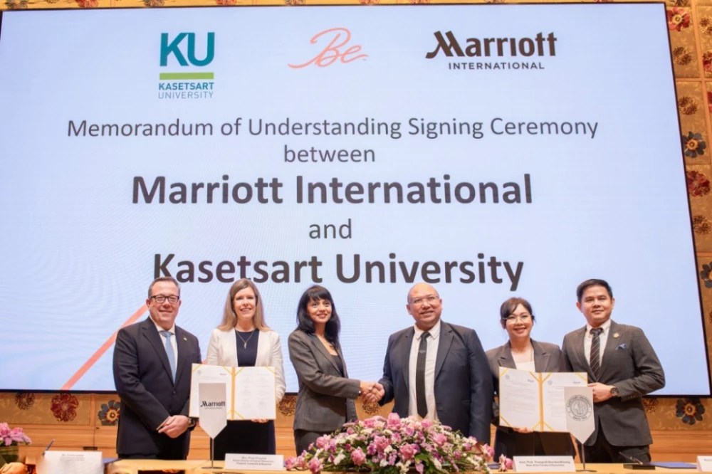 กรุงเทพฯ ประเทศไทย: แมริออท อินเตอร์เนชั่นแนล (Marriott International) ได้ลงนามในบันทึกข้อตกลงความร่วมมือกับมหาวิทยาลัยเกษตรศาสตร์ ซึ่งจะมีส่วนช่วยกำหนดอนาคตของอุตสาหกรรมการบริการในประเทศไทย ผ่านความเป็นเลิศทางวิชาการ การฝึกอบรมเชิงปฏิบัติ และการพัฒนาอย่างยั่งยืน
