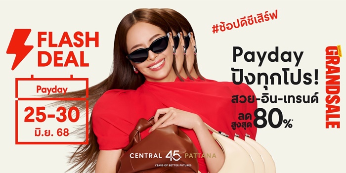 ศูนย์การค้าเซ็นทรัล ตอกย้ำความยิ่งใหญ่ของมหกรรมเซลล์กลางปี “Summer Grand Sale” จัดโปรแรงเอาใจนักช้อปรับสิ้นเดือนกับ “Flash Deal Payday” แคมเปญสุดเอ็กซ์คลูซีฟ 6 วันเต็ม ตั้งแต่วันที่ 25 – 30 มิถุนายน 2568 ที่จะเปลี่ยนวันเงินเดือนออกให้เป็นการช้อปที่คุ้มสุดๆ! ยกทัพสินค้าแฟชั่นและเครื่องสำอางจากแบรนด์ชั้นนำมาลดกระหน่ำ พร้อมโปรโมชันจัดหนัก ศูนย์การค้าเซ็นทรัล ทุกสาขาทั่วประเทศ และเอสพละนาด รัชดา