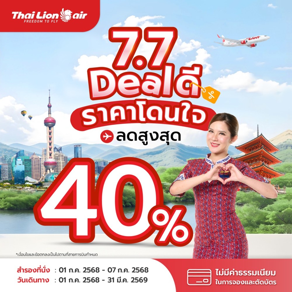 สายการบินไทย ไลอ้อน เเอร์ จัดโปรโมชัน “ 7.7 DEAL ดี ราคาโดนใจ ” ลดสูงสุด 40%