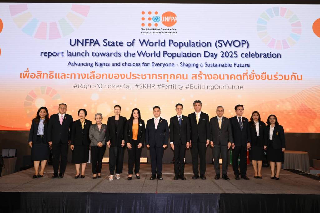 กองทุนประชากรแห่งสหประชาชาติ (UNFPA) ประเทศไทย จัดงานเฉลิมฉลองวันประชากรโลก UNFPA State of World Population (SWP) Report Launch towards the World Population Day 2025: Celebration Advancing Rights and Choices for Everyone – Shaping a Sustainable Future เพื่อสิทธิและทางเลือกของประชากรทุกคน สร้างอนาคตที่ยั่งยืนร่วมกัน พร้อมทั้งเปิดตัวรายงานสถานการณ์ประชากรโลก ประจำปี 2025 ซึ่งมีชื่อว่า The Real Fertility Crisis ณ โรงแรมพูลแมน คิง เพาเวอร์ กรุงเทพฯ โดยมีผู้เข้าร่วมงานกว่า 200 คนจากภาครัฐ ภาคเอกชน ภาควิชาการ ภาคประชาสังคม และเครือข่ายเยาวชน