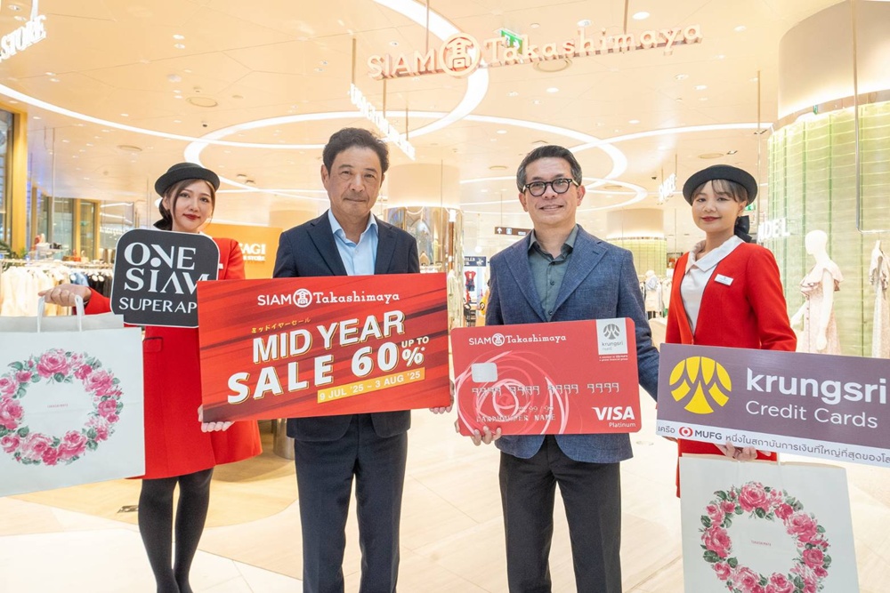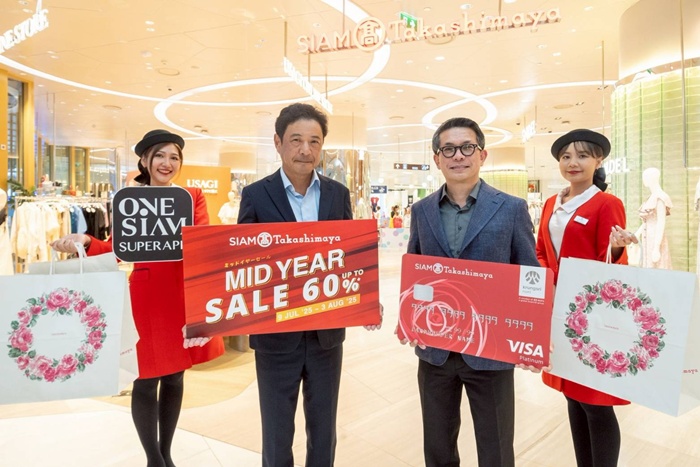 นายอัตสึชิ โอะคูโมริ กรรมการผู้จัดการ บริษัท สยาม ทาคาชิมายะ (ประเทศไทย) จำกัด เปิดเผยว่า “แคมเปญ Mid Year Sale SHOP NON-STOP ON TOP สุดคุ้ม!!” เพื่อกระตุ้นยอดขายและมอบสุดยอดประสบการณ์การช็อปปิงให้กับกลุ่มเป้าหมายทั้งลูกค้าชาวไทยและนักท่องเที่ยวต่างชาติ โดยได้ผนึกกำลังกับ บริษัท บัตรกรุงศรีอยุธยา จำกัด นำโดย นายทะยะ ทองปาน ผู้อำนวยการอาวุโส ฝ่ายบัตรเครดิตพันธมิตรธุรกิจ เพื่อมอบความคุ้มค่าและสิทธิพิเศษที่เหนือกว่าให้กับลูกค้าของเรา แคมเปญนี้รวบรวมสินค้าคุณภาพสูงและสินค้าเอ็กซ์คลูซีฟกว่า 200 แบรนด์ที่คัดสรรจากประเทศญี่ปุ่น รวมถึงแบรนด์ชั้นนำอื่น ๆ อีกมากมาย โดยสินค้าทุกชั้น ทุกแผนก ลดราคาสูงสุดถึง 60% นอกจากนี้ สมาชิก ONESIAM จะได้รับสิทธิประโยชน์และข้อเสนอสุดพิเศษเพิ่มเติม เพื่อยกระดับประสบการณ์การช็อปปิงให้สมบูรณ์แบบยิ่งขึ้น”