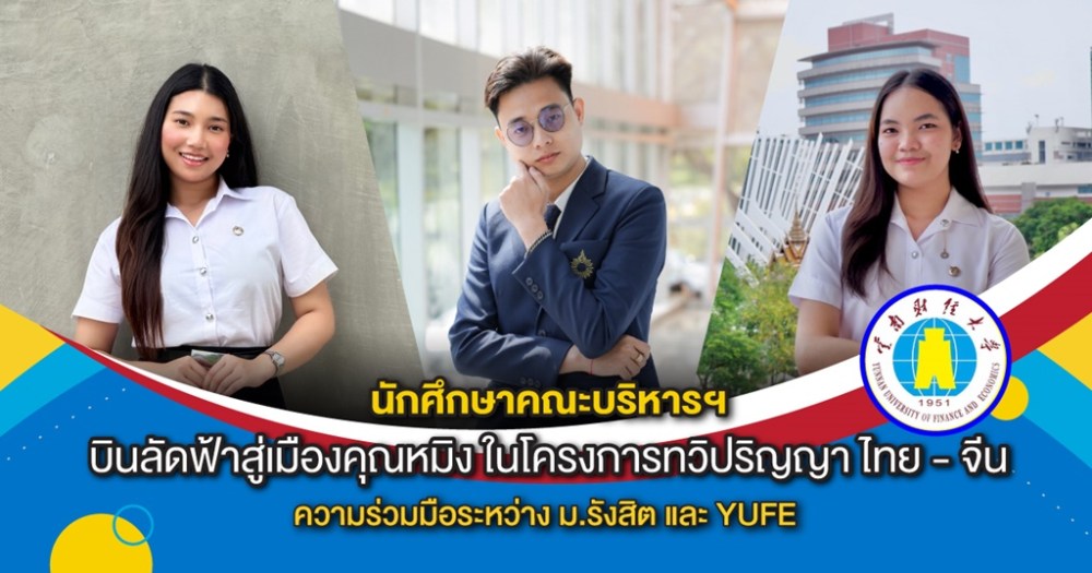 การได้มีโอกาสศึกษาเรียนรู้ภาษาและวัฒนธรรม รวมถึงการจัดการด้านบริหารธุรกิจในมหาวิทยาลัยชั้นนำของประเทศจีน นับเป็นโอกาสสำคัญสำหรับนักศึกษาในการพัฒนาตนเองเพื่อเตรียมความพร้อมสำหรับการทำงานในอนาคต วันนี้นำทีมรุ่นพี่คนเก่ง “พี่หงส์หยก พี่อชิ และพี่คิม” รุ่นพี่คณะบริหารธุรกิจ ม.รังสิต มาแชร์ประสบการณ์ บิดลัดฟ้าสู่เมืองคุณหมิง ในโครงการทวิปริญญา ไทย-จีน ความร่วมมือระหว่างคณะบริหารธุรกิจ มหาวิทยาลัยรังสิต และ Yunnan University of Finance and Economics (YUFE) พร้อมรีวิวหลักสูตรนี้ด้วยว่าเขาเรียนอะไรกันบ้าง