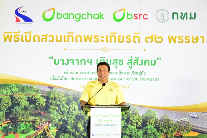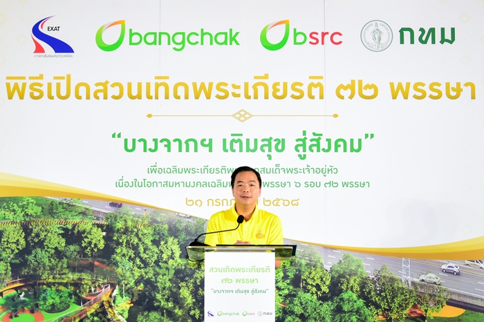 วันนี้ (21 กรกฎาคม 2568) เวลา 09.15 น. ณ บริเวณสวนเทิดพระเกียรติ ริมทางพิเศษเฉลิมมหานคร เลียบทางลงทางด่วน ถนนสุขุมวิท 50 นายสุรเชษฐ์ เหล่าพูลสุข ผู้ว่าการการทางพิเศษแห่งประเทศไทย (กทพ.) กระทรวงคมนาคม ,นายชัชชาติ สิทธิพันธุ์ ผู้ว่าราชการกรุงเทพมหานคร และนายชัยวัฒน์ โควาวิสารัช ประธานเจ้าหน้าที่บริหารกลุ่มบริษัทบางจากและกรรมการผู้จัดการใหญ่ บริษัท บางจาก คอร์ปอเรชั่น จำกัด (มหาชน) ร่วมพิธีเปิดสวนเทิดพระเกียรติ 72 พรรษา บางจากฯ เติมสุข สู่สังคม