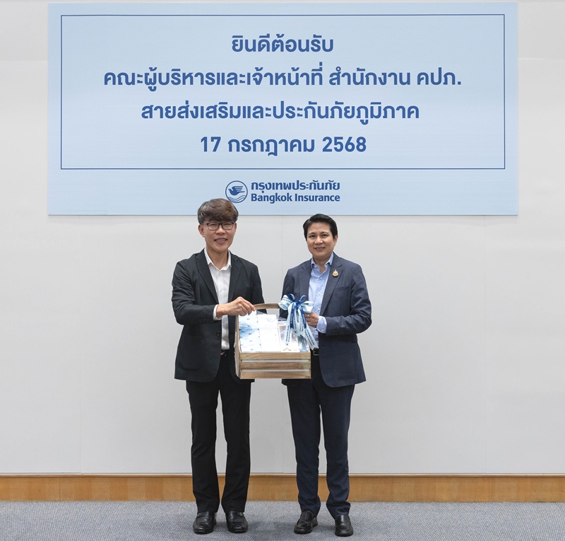 ดร.อภิสิทธิ์ อนันตนาถรัตน กรรมการและประธานคณะผู้บริหาร บริษัท กรุงเทพประกันภัย จำกัด (มหาชน) และคณะผู้บริหารให้การต้อนรับ นางสาววสุมดี วสีนนท์ รองเลขาธิการ ด้านกำกับคนกลางและประกันภัยภูมิภาค นางสาววิไลรัตน์ แสงแก้ว ผู้ช่วยเลขาธิการ สายส่งเสริมและประกันภัยภูมิภาค พร้อมด้วยคณะผู้บริหารและเจ้าหน้าที่สายส่งเสริมและประกันภัยภูมิภาค สำนักงานคณะกรรมการกำกับและส่งเสริมการประกอบธุรกิจประกันภัย หรือสำนักงาน คปภ. จำนวนกว่า 70 คน ในโอกาสที่ให้ความสนใจเข้าเยี่ยมชมดูงาน ณ อาคารกรุงเทพประกันภัย ถนนสาทรใต้ เมื่อวันที่ 17 กรกฎาคม 2568