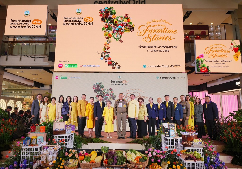 กรุงเทพฯ – มูลนิธิโครงการหลวง ร่วมกับ มหาวิทยาลัยเกษตรศาสตร์ และ บริษัท เซ็นทรัลพัฒนา จำกัด (มหาชน) ผู้บริหารศูนย์การค้าเซ็นทรัลเวิลด์, บมจ. เมืองไทยประกันชีวิต, บมจ. บางจาก คอร์ปอเรชั่น และ บริษัท ภัณฑ์ดีพลาสติก จำกัด แถลงข่าวการจัดงาน “โครงการหลวง 56” ภายใต้แนวคิด “Farm To City–Farmtime Stories น้ำพระราชหฤทัย จากฟ้าสู่มหานคร” โดยจัดขึ้นเพื่อเฉลิมพระเกียรติพระบาทสมเด็จพระเจ้าอยู่หัวองค์นายกกิตติมศักดิ์มูลนิธิโครงการหลวง และสมเด็จพระนางเจ้า ฯ พระบรมราชินี น้อมรำลึกในพระมหากรุณาธิคุณของพระบาทสมเด็จพระบรมชนกาธิเบศร มหาภูมิพล อดุลยเดชมหาราช บรมนาถบพิตร ผู้ทรงก่อตั้งมูลนิธิโครงการหลวง นอกจากนี้ ยังร่วมเฉลิมพระเกียรติสมเด็จพระนางเจ้าสิริกิติ์ พระบรมราชินีนาถ พระบรมราชชนนีพันปีหลวง เนื่องในวันเฉลิมพระชนมพรรษา วันที่ 12 สิงหาคม 2568