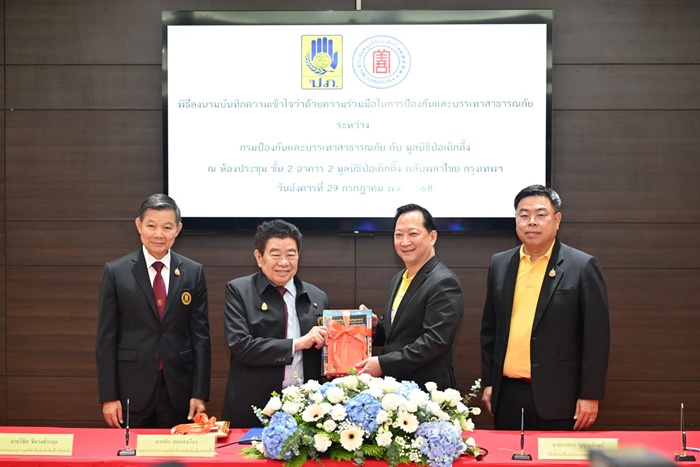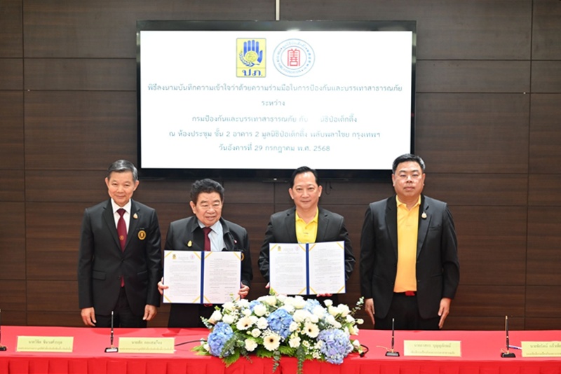 วันนี้ (วันอังคารที่ 29 กรกฎาคม พ.ศ. 2568) มูลนิธิป่อเต็กตึ๊ง โดย นายสัก กอแสงเรือง รองประธานกรรมการ ในนามของผู้แทนประธานกรรมการมูลนิธิฯ พร้อมด้วย นายวิชิต ชินวงศ์วรกุล รองประธานกรรมการ ร่วมกับ กรมป้องกันและบรรเทาสาธารณภัย โดย นายภาสกร บุญญลักษม์ อธิบดีกรมป้องกันและบรรเทาสาธารณภัย ลงนามบันทึกความเข้าใจ [MOU] ว่าด้วยความร่วมมือในการป้องกันและบรรเทาสาธารณภัย ผนึกกำลังทั้งทางด้านวิชาการ และการปฏิบัติการอันเป็นการบูรณาการการจัดการเพื่อเสริมสร้างศักยภาพขีดความสามารถของเจ้าหน้าที่และอาสาสมัครมูลนิธิฯ และเตรียมความพร้อมรับมือสาธารณภัยให้สามารถบริหารจัดการและปฏิบัติการตอบโต้เหตุฉุกเฉินได้อย่างมีประสิทธิภาพ พร้อมยกระดับขอบเขตหน้าที่ของมูลนิธิฯ อาทิ การร่วมกับทางกรมป้องกันและบรรเทาสาธารณภัยด้านการฝึกอบรมให้ความรู้ในการป้องกันและบรรเทาสาธารณภัย พร้อมสนับสนุนงบประมาณเครื่องมืออุปกรณ์ที่จำเป็นเพื่อรองรับการฝึกอบรม โดยมี นางศิริกุล โอภาสวงศ์ กรรมการและเลขาธิการ เป็นผู้กล่าววัตถุประสงค์ พร้อมด้วยคณะกรรมการ และผู้บริหารของมูลนิธิป่อเต็กตึ๊ง และกรมป้องกันและบรรเทาสาธารณภัย กระทรวงมหาดไทย ร่วมในพิธี ณ ห้องประชุมชั้น 2 อาคาร 2 มูลนิธิป่อเต็กตึ๊ง พลับพลาไชย กรุงเทพฯ