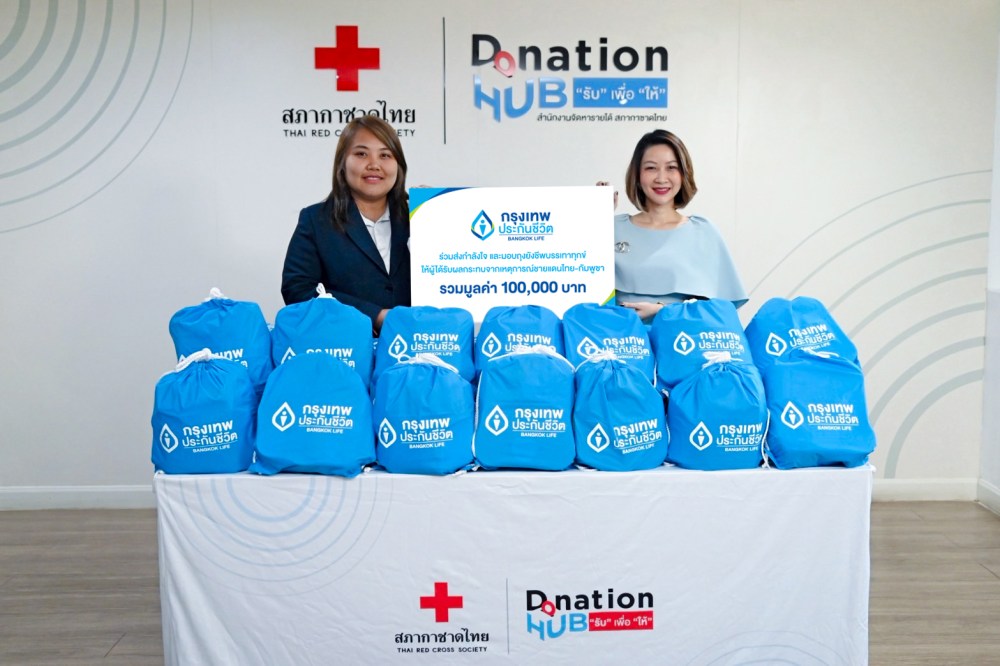 บริษัท กรุงเทพประกันชีวิต จำกัด (มหาชน) โดย นางสาวอรนาฎ นชะพงษ์ ผู้ช่วยผู้จัดการใหญ่ สายกลยุทธ์การตลาดและบริหารจัดการลูกค้า ร่วมส่งมอบพลังแห่งความใส่ใจ และความห่วงใย ถึงผู้ที่ได้รับผลกระทบจากเหตุการณ์บริเวณชายแดนไทย กัมพูชา โดยมอบเงิน พร้อมถุงยังชีพบรรเทาทุกข์แก่สภากาชาดไทย มูลค่ารวม 100,000 บาท ที่เป็นหน่วยงานกลางให้ความช่วยเหลือบรรเทาความเดือดร้อน ส่งต่อถุงยังชีพที่พนักงานกรุงเทพประกันชีวิตจิตอาสา ร่วมใจกันบรรจุสิ่งของเครื่องใช้จำเป็น ไปยังผู้ที่ได้รับผลกระทบในพื้นที่ต่างๆ