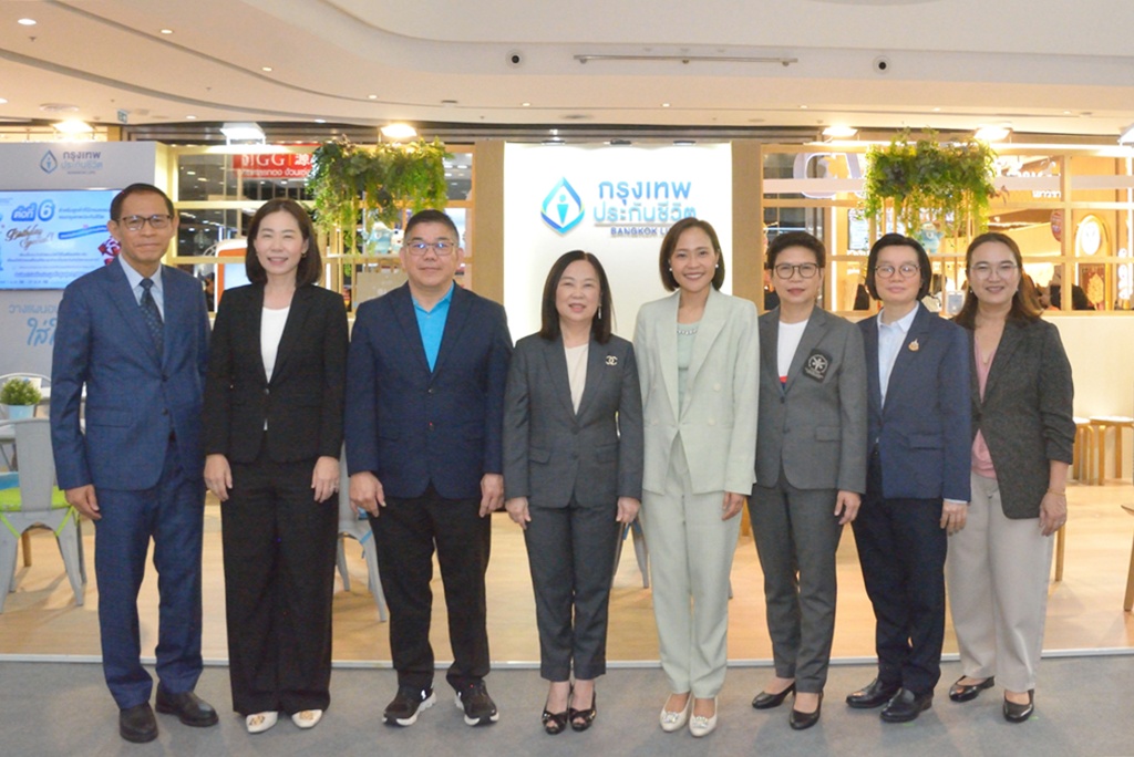 บริษัท กรุงเทพประกันชีวิต จำกัด (มหาชน) นำโดย นางพิรัชนี นวสิทธิกุล ผู้บริหารฝ่ายพัฒนาธุรกิจตัวแทนและที่ปรึกษาทางการเงิน (ที่ 4 จากซ้าย) พร้อมฝ่ายขายกรุงเทพประกันชีวิตให้การต้อนรับ ดร.ชญานิน เกิดผลงาม รองเลขาธิการ ด้านกลยุทธ์และเทคโนโลยี สำนักงานคณะกรรมการกำกับและส่งเสริมการประกอบธุรกิจประกันภัย (คปภ.) (ที่ 4 จากขวา) ในพิธีเปิดงานวันประกันชีวิตแห่งชาติ ครั้งที่ 24 ประจำปี 2568 และเยี่ยมชมบูธกรุงเทพประกันชีวิต ที่พร้อมให้บริการการวางแผนทางการเงิน ด้วยผลิตภัณฑ์ที่หลากหลายครบครันทุกความต้องการ ทั้งด้านการออมเงิน การลงทุน การวางแผนปกป้องความเสี่ยงในชีวิต สุขภาพ โรคร้ายแรง การศึกษาบุตร การวางแผนเกษียณ ไปจนถึงการวางแผนมรดก เพื่อส่งต่อความมั่นคงและมั่งคั่งให้แก่คนที่คุณรัก ภายใต้แนวคิด “กรุงเทพประกันชีวิต ใส่ใจในทุกเป้าหมายชีวิต” ณ เซ็นทรัลเวสต์เกต เมื่อเร็วๆ นี้