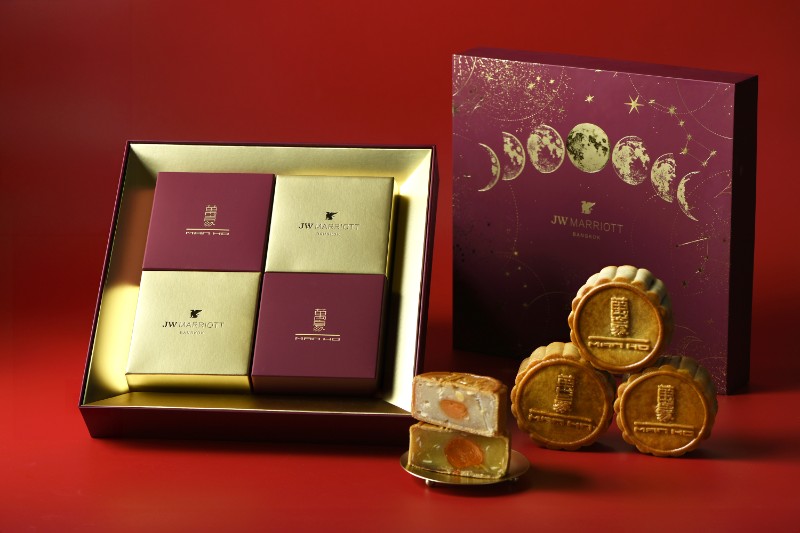 ขณะที่โรงแรมเจดับบลิว แมริออท กรุงเทพฯ เชฟผู้เชี่ยวชาญจากห้องอาหารจีนมานโฮ ได้นำเสนอชุดกล่องขนมไหว้พระจันทร์สุดล้ำค่าที่ได้รับแรงบันดาลใจจากการเปลี่ยนแปลงของดวงจันทร์และกาลเวลา ภายในบรรจุไส้ระดับพรีเมียม เช่น ทุเรียนหมอนทองไข่เค็ม และพุทราจีน ในราคากล่องละ 1,288 บาทสุทธิ มีด้วยกันทั้งหมด 4 ชิ้น